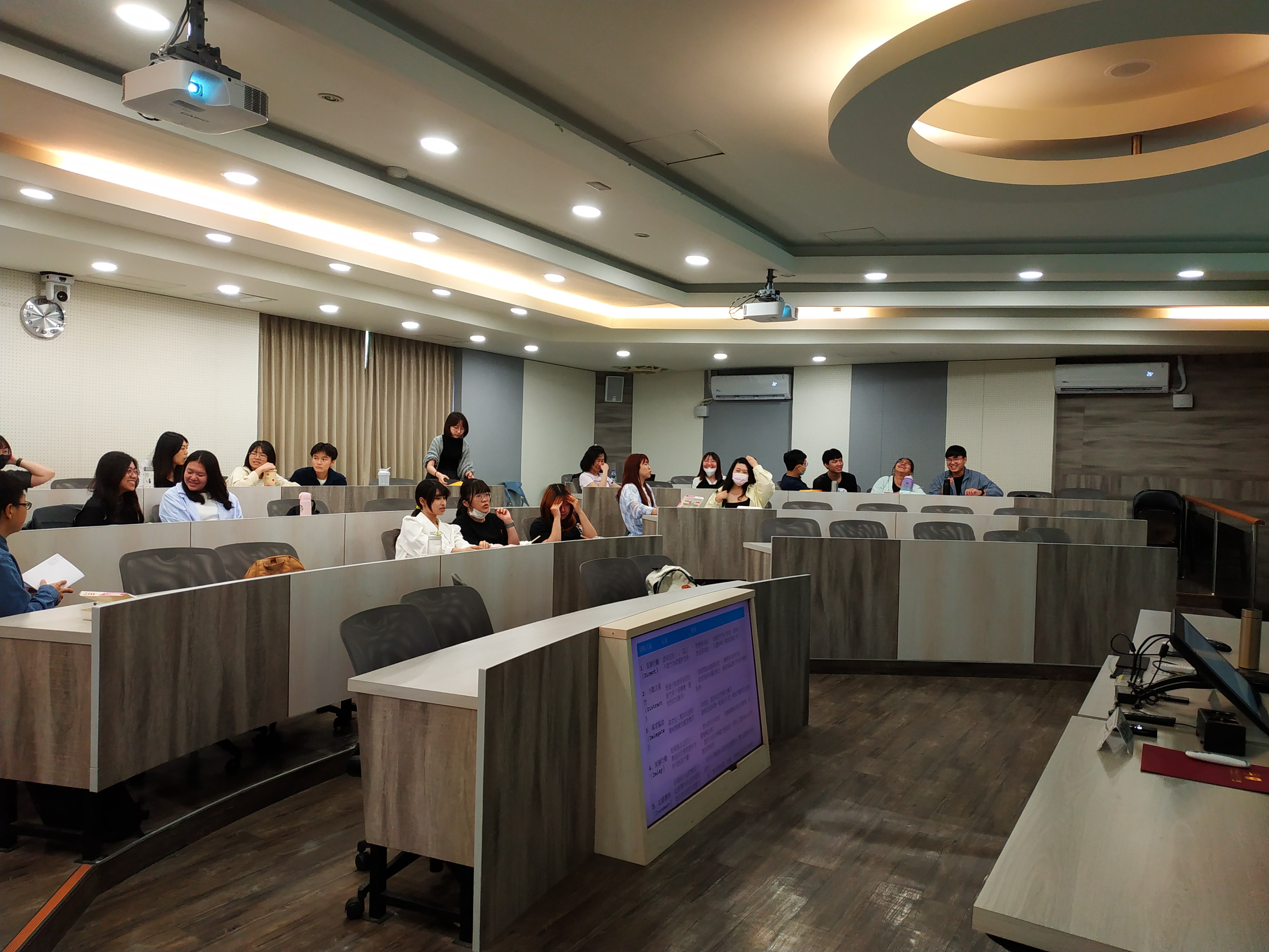 講座的另一重點是介紹「旁觀者介入」(bystander intervention)策略,彭渰雯呼籲性騷擾防治不能僅訴求個別受害者申訴抵抗,而是每個人皆採取行動來建構安全平等的環境。研究顯示,美國大學校園綠點計畫(Green Dot Programs)培力教職員生成為積極主動的旁觀者,有效提高了旁觀者干預的比例,扭轉社群文化並減少暴力的發生。她介紹了實用的「5 D’s」介入法:直接行動(Direct)、分散注意力(Distract)、尋求協助(Delegate)、延遲行動(Delay)、記錄事件(Document),並透過實際案例讓教職員生思考及討論如何安全、有效地介入。