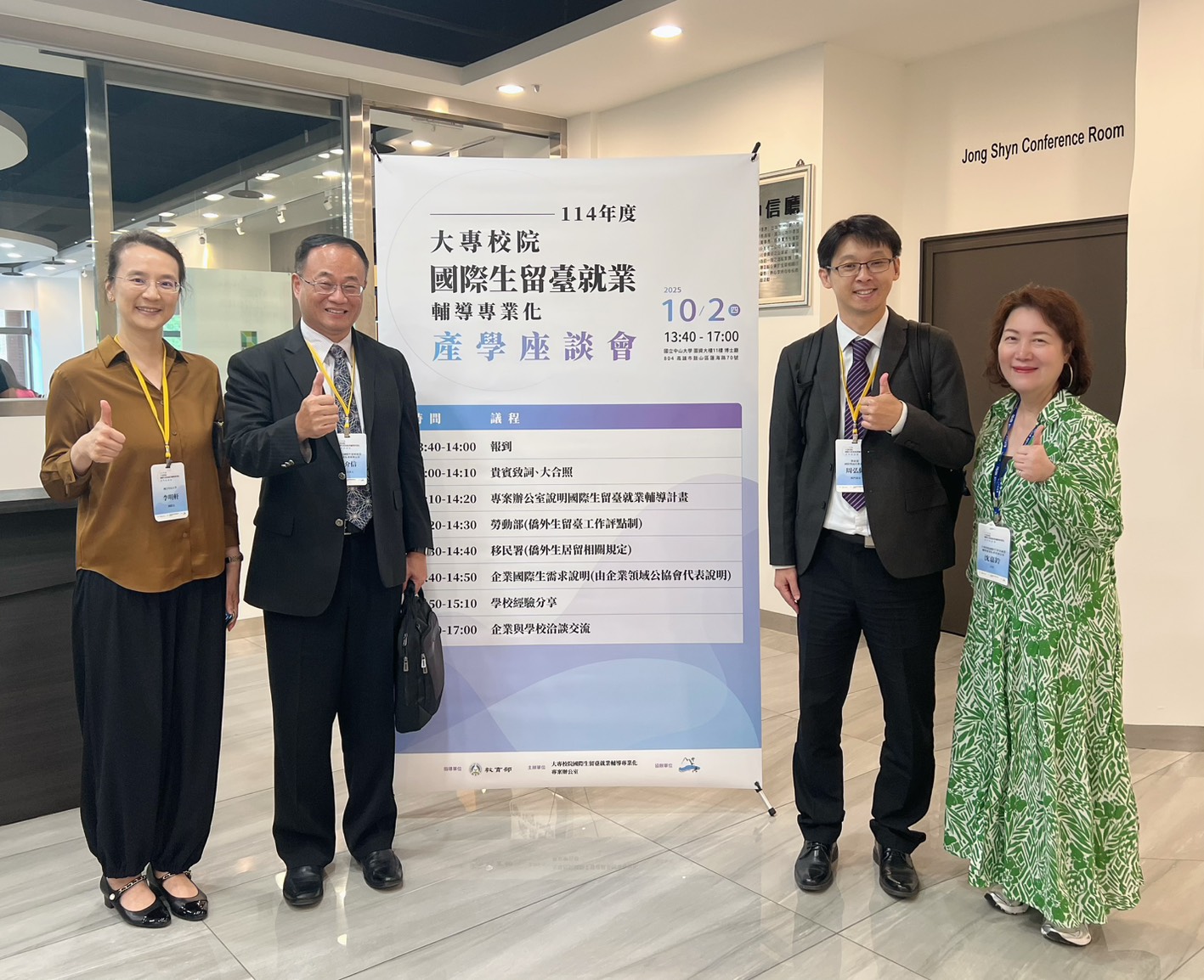座談會中特別邀請大專校院國際生留臺就業輔導專業化計畫主持人吳介信、勞動部勞動力發展署、內政部移民署及台灣科學園區同業公會南區辦事處進行簡報,說明產業人力需求及僑外生留臺評點制、工作許可與居留規定,協助學校與企業掌握最新政策。國立中山大學及朝陽科技大學則分享校企合作經驗,包括開設專班與課程、辦理職涯發展活動、企業徵才說明會及科學園區參訪等,展現高等教育在國際人才培育上的積極作為。