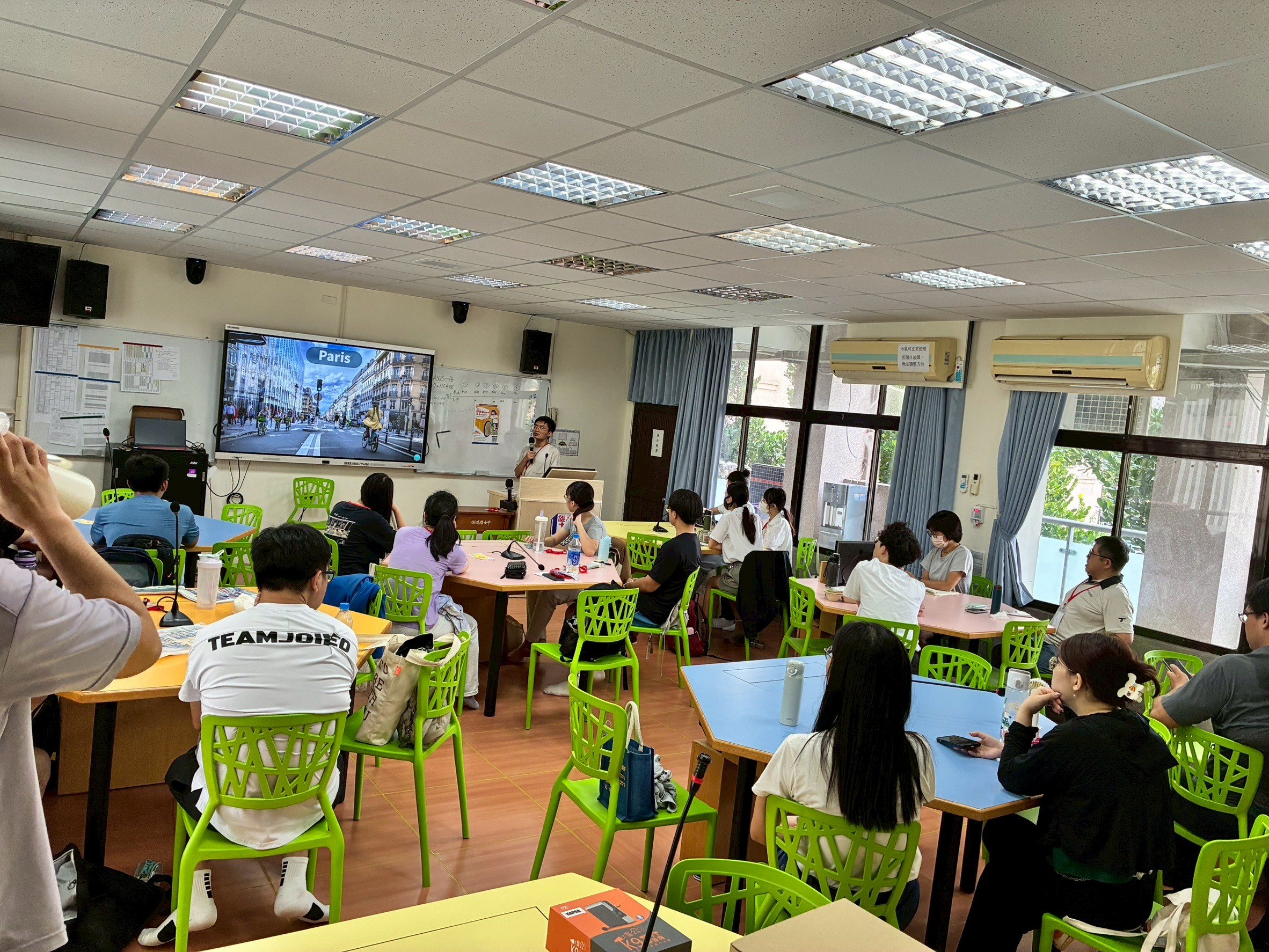 本次活動由行促會理事長林于凱主講「公民參與與社區溝通」,引導學生理解街道改造不僅是設計問題,更是社區共識的過程;隨後由中山大學合作講師賴昱愷介紹「人本交通」理念與「道路瘦身」、「街道分級」等最新設計手法,讓學生理解安全、效率與環境並重的交通哲學。
