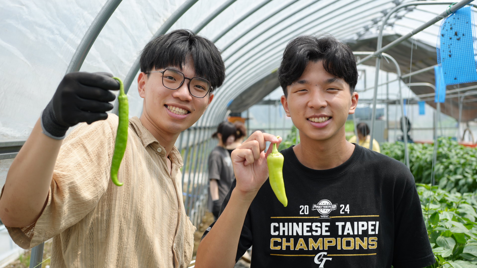 農業體驗活動中,臺灣學生走訪中野農場,親手採收番茄與青椒,並以新鮮食材製作披薩,體驗從產地到餐桌的完整過程。此外,學生也參與前夜祭的剝玉米大賽,在台上與當地民眾競爭,留下深刻的印象。對於多數習慣城市生活的學生而言,這些農事體驗極具新鮮感。