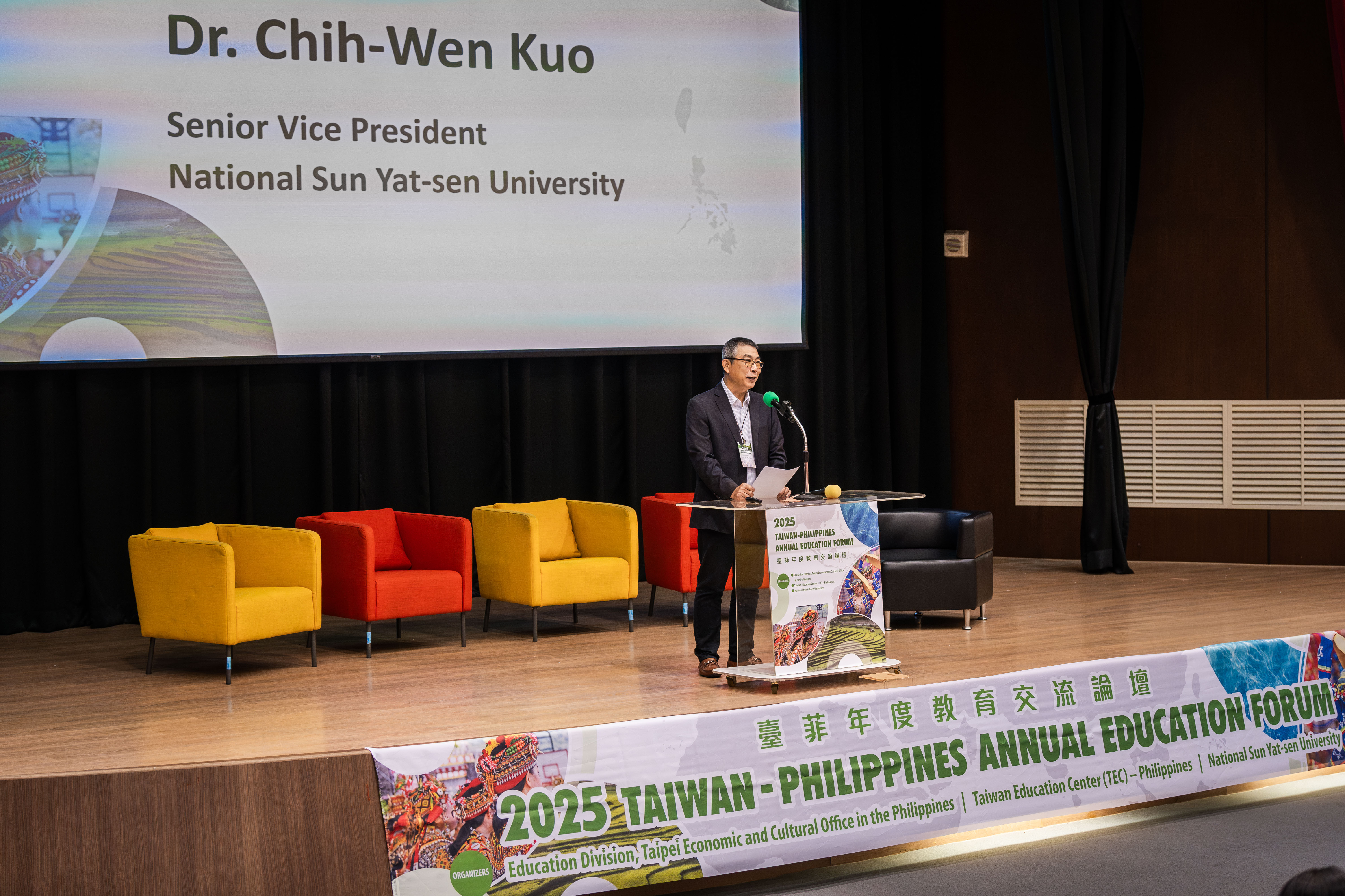 中山大學副校長郭志文表示,臺灣與菲律賓同為南島文化的重要據點,擁有相似的歷史與海洋連結;今年論壇主題聚焦南島文化與原住民族永續,正回應當前全球對文化多樣性與永續發展的關注,也象徵兩國以共同的文化血脈為基礎,攜手探索教育與社會正義的新可能。他強調,中山大學長期深耕海洋、人文及社會研究領域,並持續拓展南島研究能量,希望透過此論壇,深化兩國師生間的理解與合作。