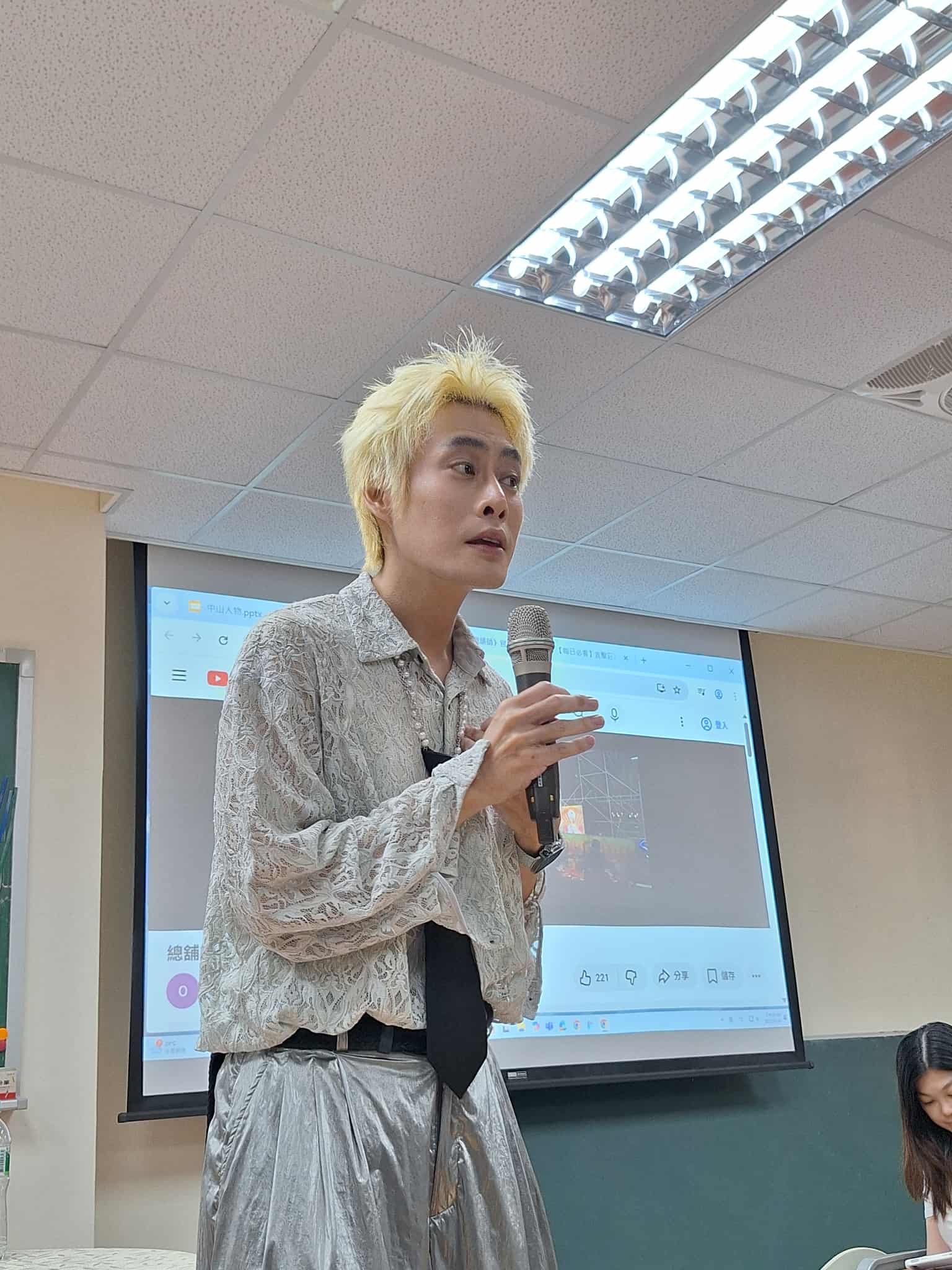 在談到社群時代的創作時,陳栢青以「挑菜、挑男人」的幽默比喻,指出人們在社群媒體上不斷挑選、展示自我,其實都是一種「想被看見」的渴望。他以自身曲折又戲劇化的交友經歷為引,談到身為男同志的成長歷程:從性別壓迫中走出,到社群時代得以被看見。社群媒體讓多元性別族群的故事被廣泛聽見,也讓不同立場的人有了對話的可能;他也提醒學生,在這個充滿曝光與焦慮的時代,真正的創作應該回到「關心什麼、在乎誰」,因為寫作的第一步,就是好奇、找到自己在乎的事。