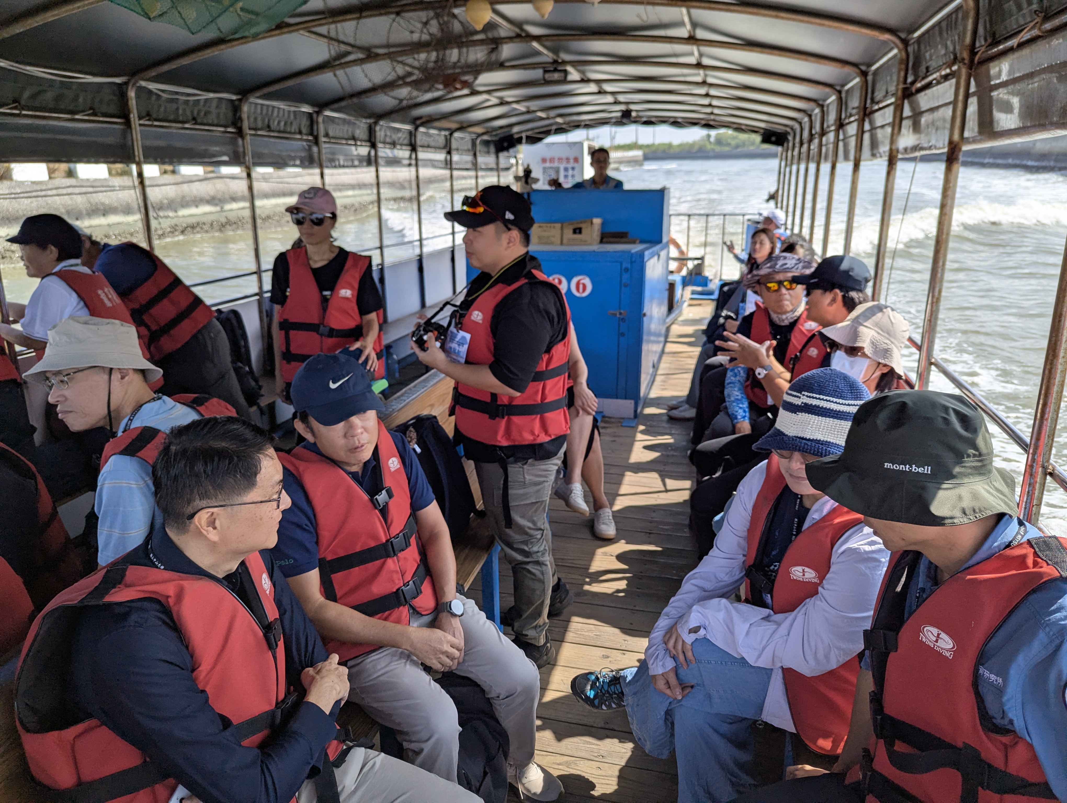 這場由國科會與中山大學共同參與的科學考察,宛如一場與海洋對話的行動。參訪團搭船穿越七股潟湖,登上颱風過後新形成的網子寮汕破口,實地觀察沙洲變遷,並參觀紅樹林區的水質監測站與復育貝克氏鹽草的六號小島苗圃區。沿途,西南海岸站研究團隊熱情講解颱風後的潟湖變化與科學觀測成果。