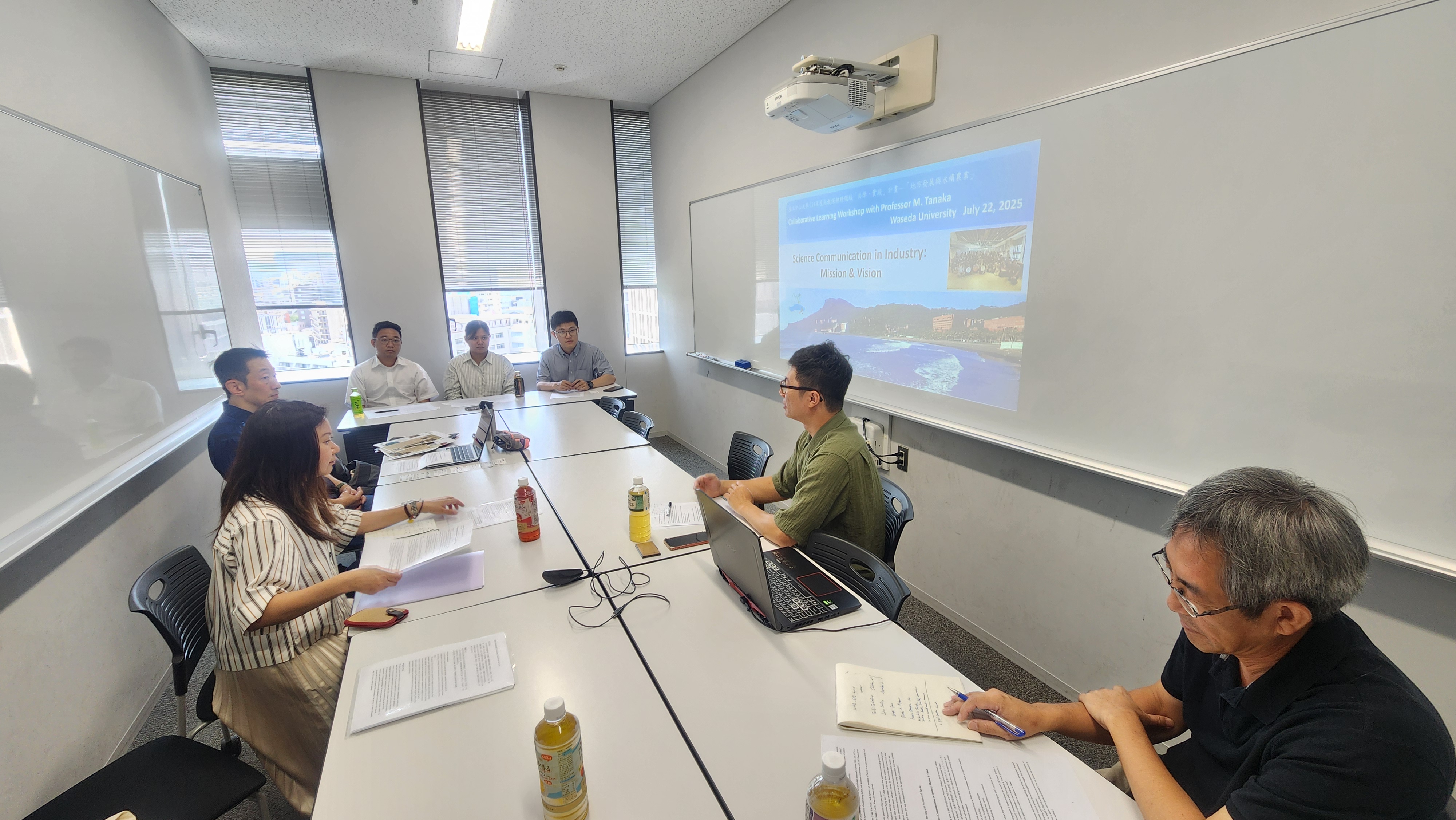 共學行程並至早稻田大學學習科學/風險傳播,舉辦兩日「產業科學傳播臺日經驗探討工作坊」。早大為日本科學傳播的研究重鎮,此次與國際部副部長法學院教授Tetsuhito Motoyama,以及世界知名科學傳播學者、政治經濟研究所教授Mikihito Tanaka交流,分享許多科學傳播的議題以及案例分析,探討日本科學傳播專家如何幫助民眾面對災害,例如:地震、海嘯、汞水事件、COVID19與疫苗等等,深入探討政府政策、訊息發布方式與影響等個案探討。Tanaka教授在疫情期間協助政府與民眾溝通,分享諸多第一手經驗,也稱讚臺灣抗疫歷程是學習的典範。三位博士生踴躍提問,特別是對當今年輕科學家,除了學術研究外,要如何與地方社群合作等,師生交流熱絡。