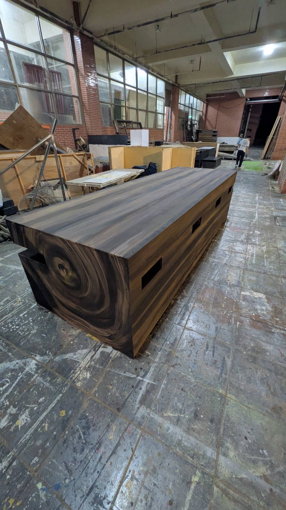 本次《蝶變纏身》製作以「永續劇場」為核心理念,參考英國STAGES提出的「劇場綠皮書」,從源頭思考製作流程,實踐材料盤點與回收、雲端登錄報廢物資、延長製作期程以減少浪費,並首度與衛武營國家藝術文化中心合作,回收不再使用的舞台結構重新運用,攜手中山永續發展辦公室推動永續行動。團隊全面盤點庫存道具、家具與舞台結構,從可重複使用與易於拆解的角度設計舞台與服裝,提升資源流動率與再利用效率;特殊服裝亦記錄材質與裁縫細節,利於未來轉化應用。此外,因應基因工程主題,劇組跨系與生物醫學科技相關科系合作,深化田調與知識建構,展現藝術與科學的跨域對話與永續實踐。