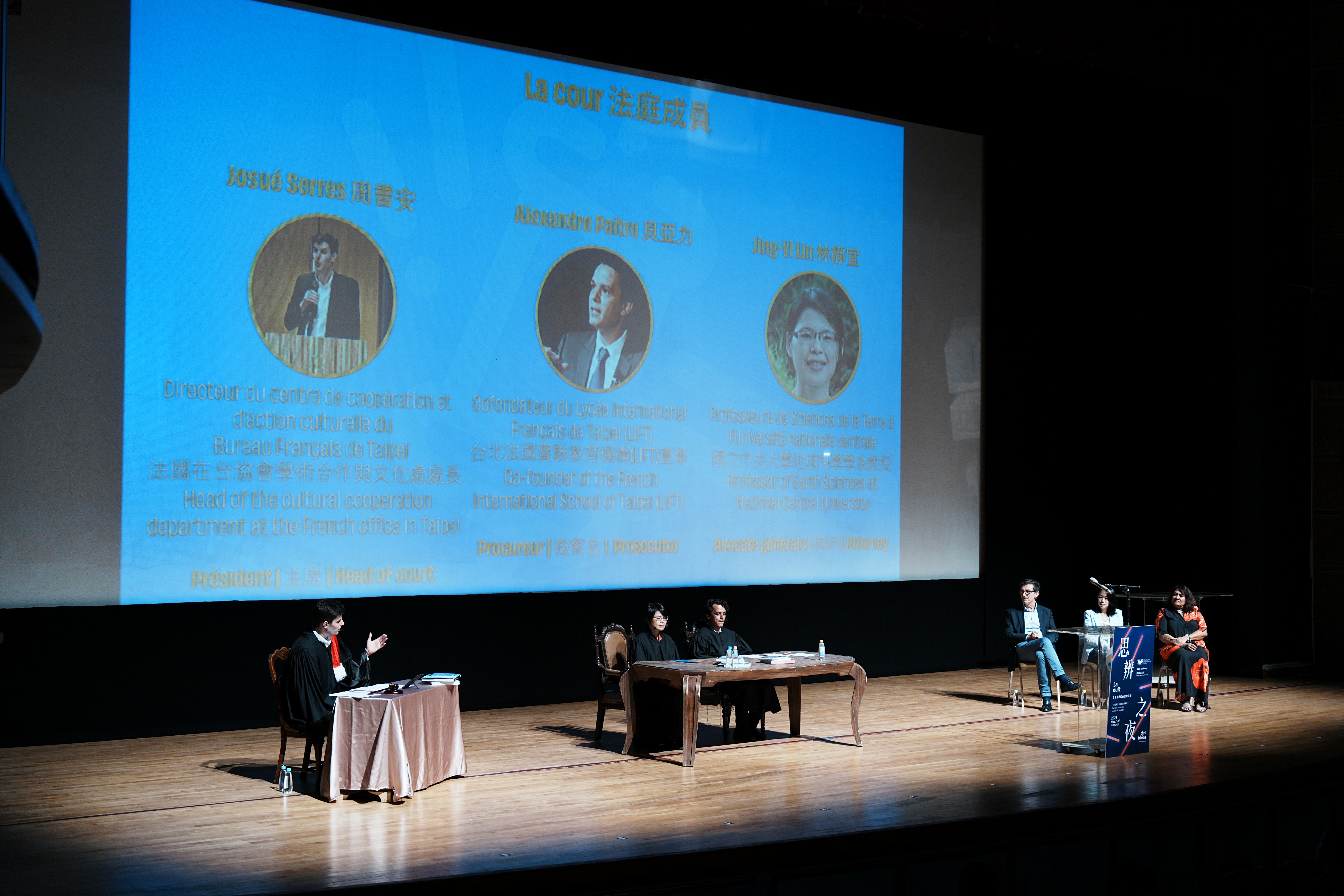 今年思辨之夜採用互動形式「為未來世代而設的法庭」,邀請台法講者化身法庭角色,圍繞「一座島嶼是否可以拯救世界?」展開深度辯論。討論島嶼作為獨特的生態系統與韌性實驗場,如何啟發世界面對氣候變遷、永續發展及文化多樣性等挑戰。