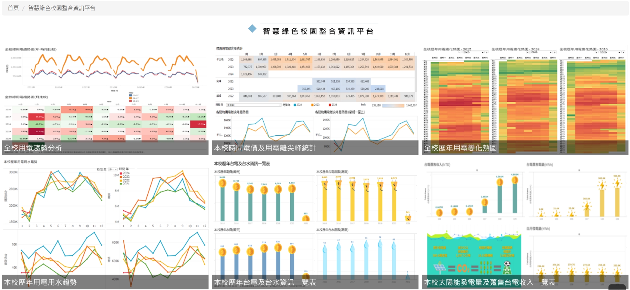 中山大學總務處處長蔡俊彥指出,在中山的行政大樓中央空調系統設備節能改善方面,執行整體設備汰換與節能監測,並納入既有能源管理系統;改善後的行政大樓建築能效,由原先5級提升至1級,節能效益達41%。在全校設置的11處太陽光電系統方面,包含牆面建築整合型、地面型及屋頂型三種,總設置容量為1.05MWp,未來也將繼續盤點評估校內空間,積極推動設置。在能源管理系統方面,各項大型耗能設備與節能措施皆納入節能系統監控,並蒐集用電數據、彙整圖表,公告於智慧綠色校園資訊平台,將能源使用視覺化且公開揭露。
