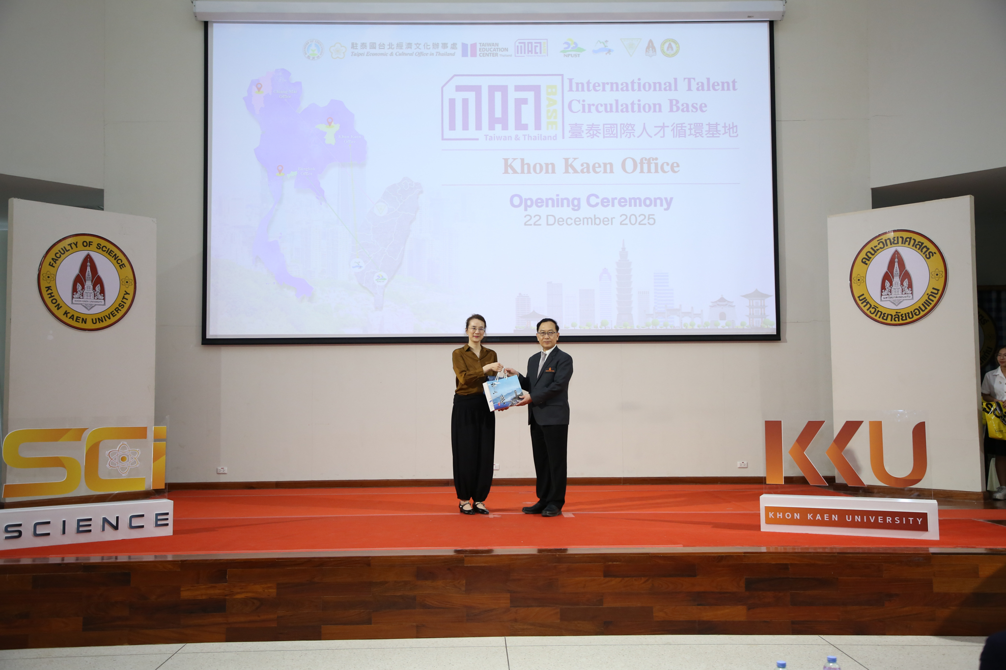 中山大學國際長李明軒則強調,孔敬基地的成立並非一蹴可幾,而是奠基於雙方多年來穩定的學術交流與互信基礎。今年稍早,孔敬大學理學院師長訪問中山大學理學院與化學系,正逢臺灣啟動「國際產業人才教育專班」泰國計畫的重要時刻,也促成雙方對深化合作的共識。她特別感謝孔敬大學行政團隊與理學院的全力支持,使基地得以順利設立。