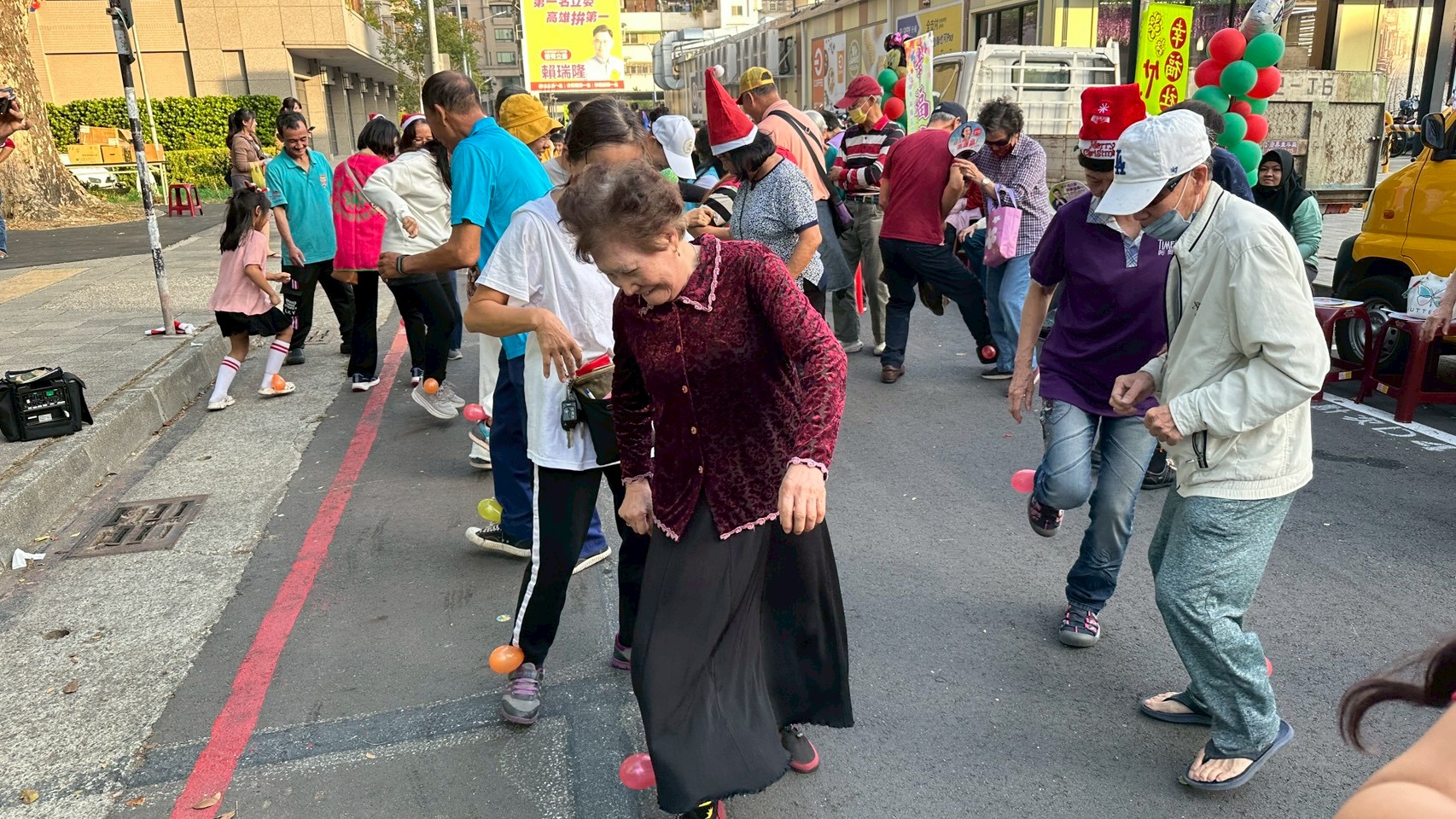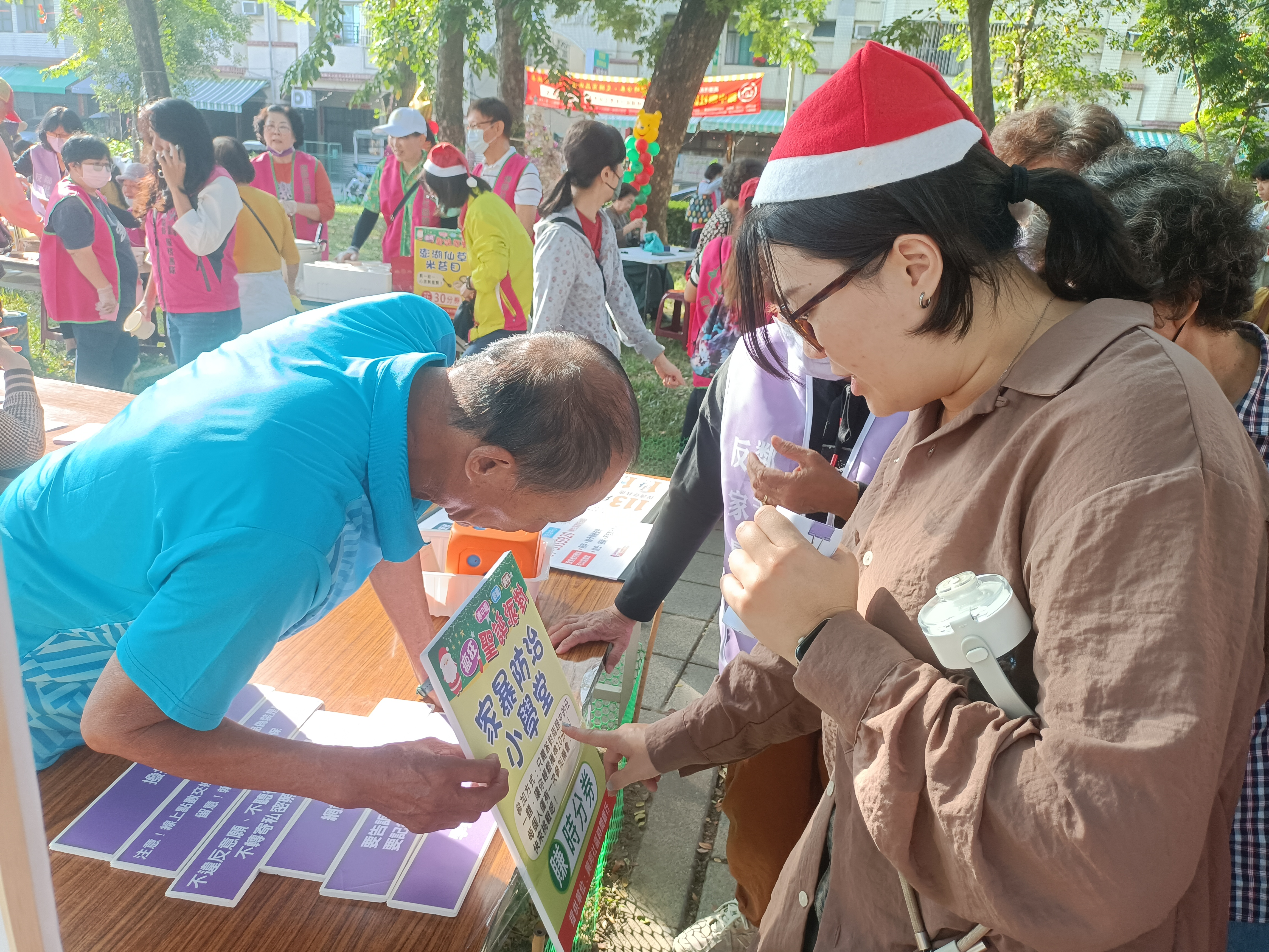 耶誕前夕,三個社區在竹西里兒童公園聯合舉辦「瘋狂聖誕派對成果市集」,首度對外展現時間銀行推動的階段性成果。活動當天,學生與社區長輩在攤位、遊戲與服務交換中自然互動,笑聲不斷,不僅讓市集充滿節慶氛圍,也悄悄拉近了世代之間的距離。