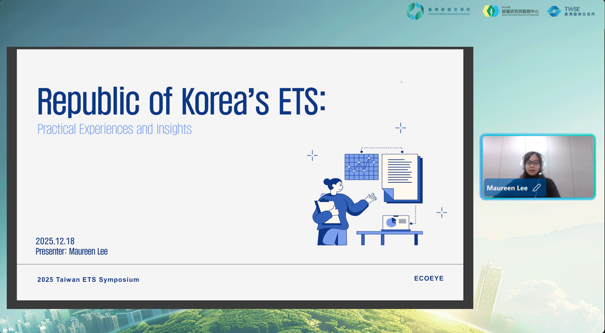 韓國碳市場顧問公司Ecoeye資深研究員Maureen Lee則以K-ETS為例,指出韓國早期排放上限過於寬鬆、免費配額比例過高,導致價格訊號不足與市場流動性低落。韓國從過去制度實施十年所遭遇的挑戰中學習,展望明年起的第四階段,將透過收緊排放上限、逐步提高且可預期的拍賣比例,同時引入市場穩定機制(MSR),並強調核配額需符合真實產業及經濟現況,希望加強系統韌性與市場流動。
