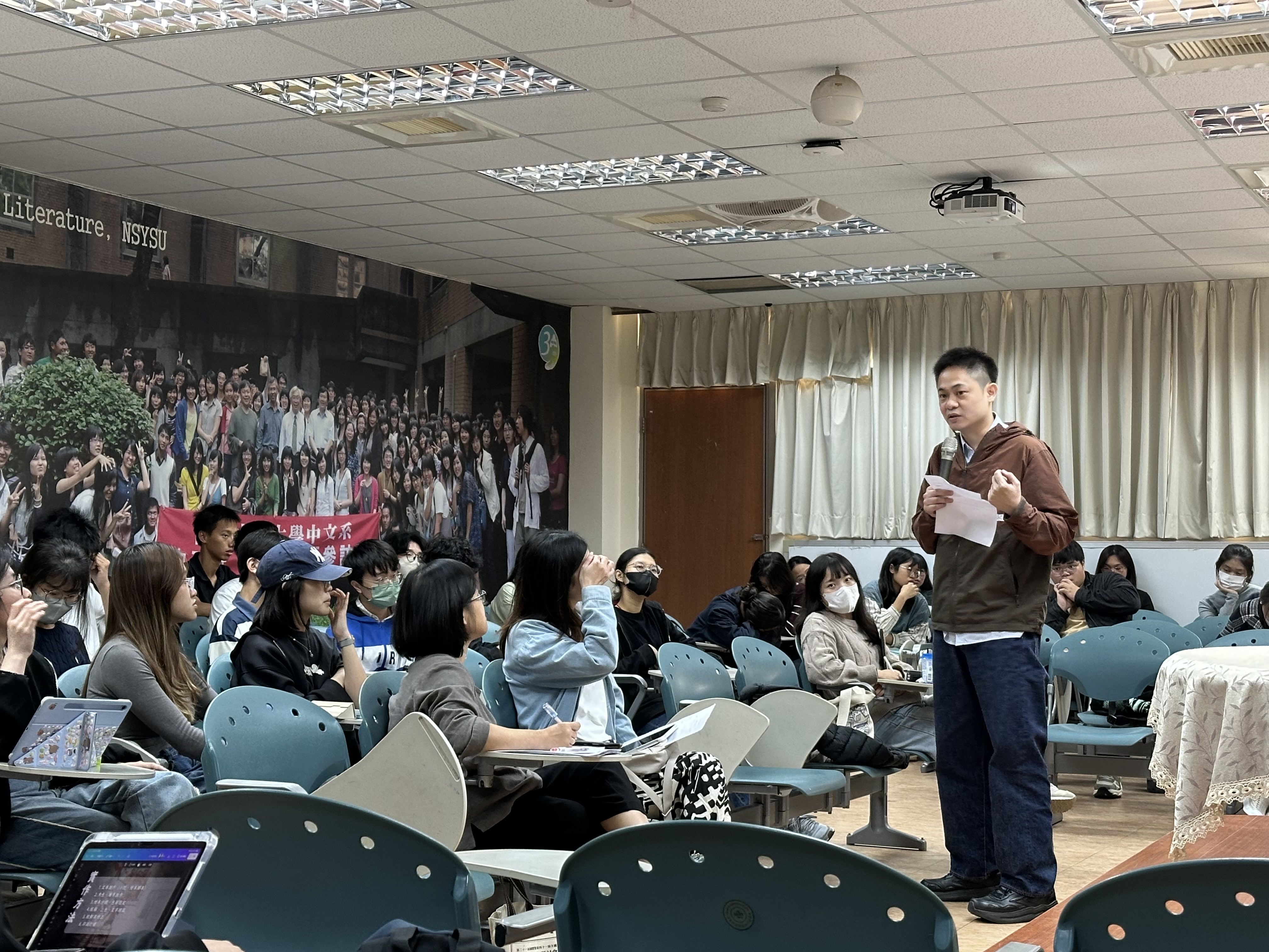 在人物創作層面,駐校作家陳栢青以「市場108條好漢——創造一個人物的秘密」為題,從小說、影視與新聞敘事切入,剖析人物在故事中的關鍵功能,引導學生思考如何為虛構角色注入真實而立體的生命感。透過生動案例,學生得以深入理解角色塑造與敘事策略的核心技巧。