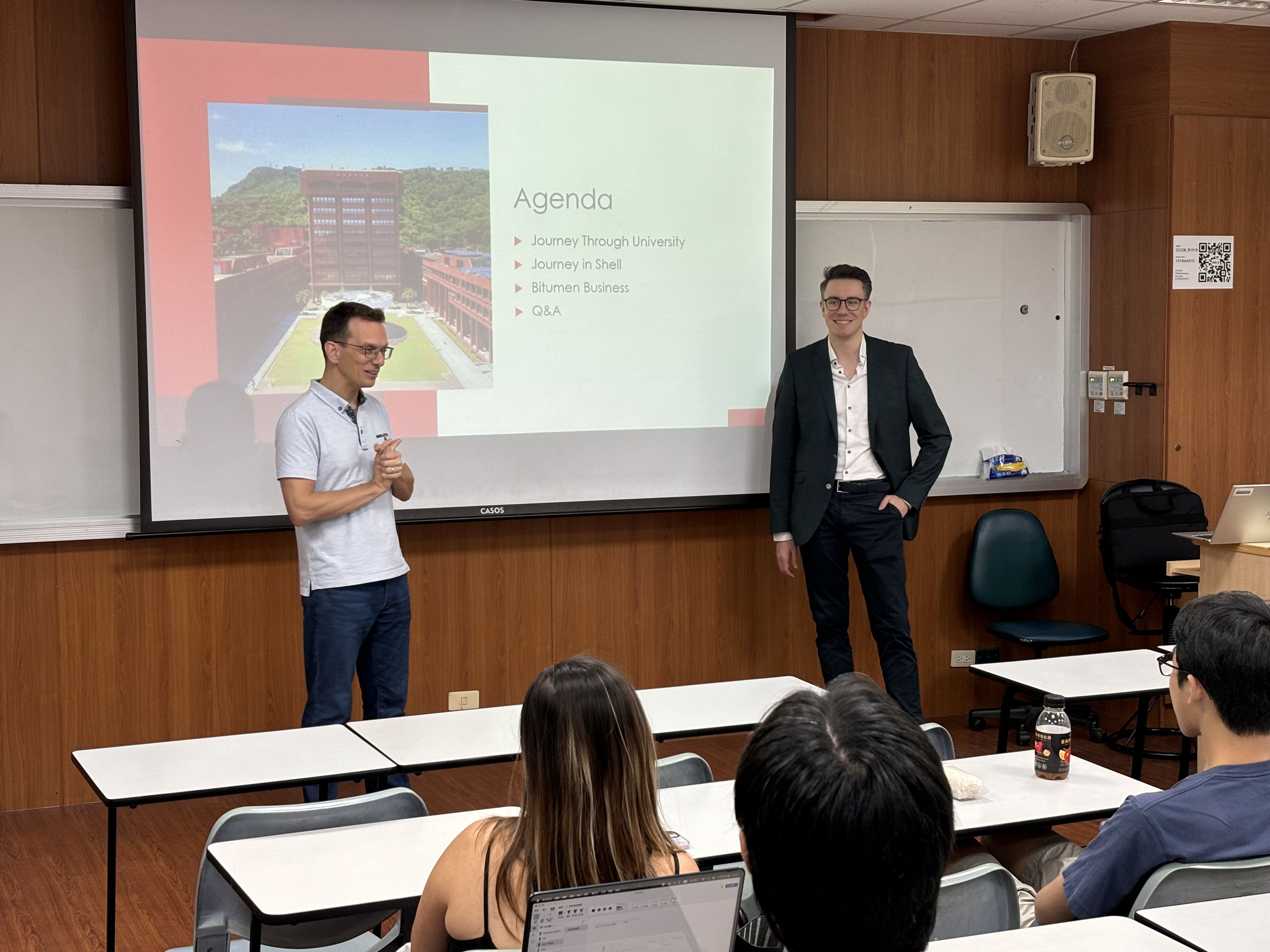 【管理學院提供】中山大學管理學院國際交流暨認證辦公室(Office of International Relations and Accreditation)邀請國際校友、殼牌(Shell)策略客戶經理 Jan-Philipp(J.P.)Fink返校分享其國際求學經歷、職涯發展,以及對瀝青產業的第一線觀察。