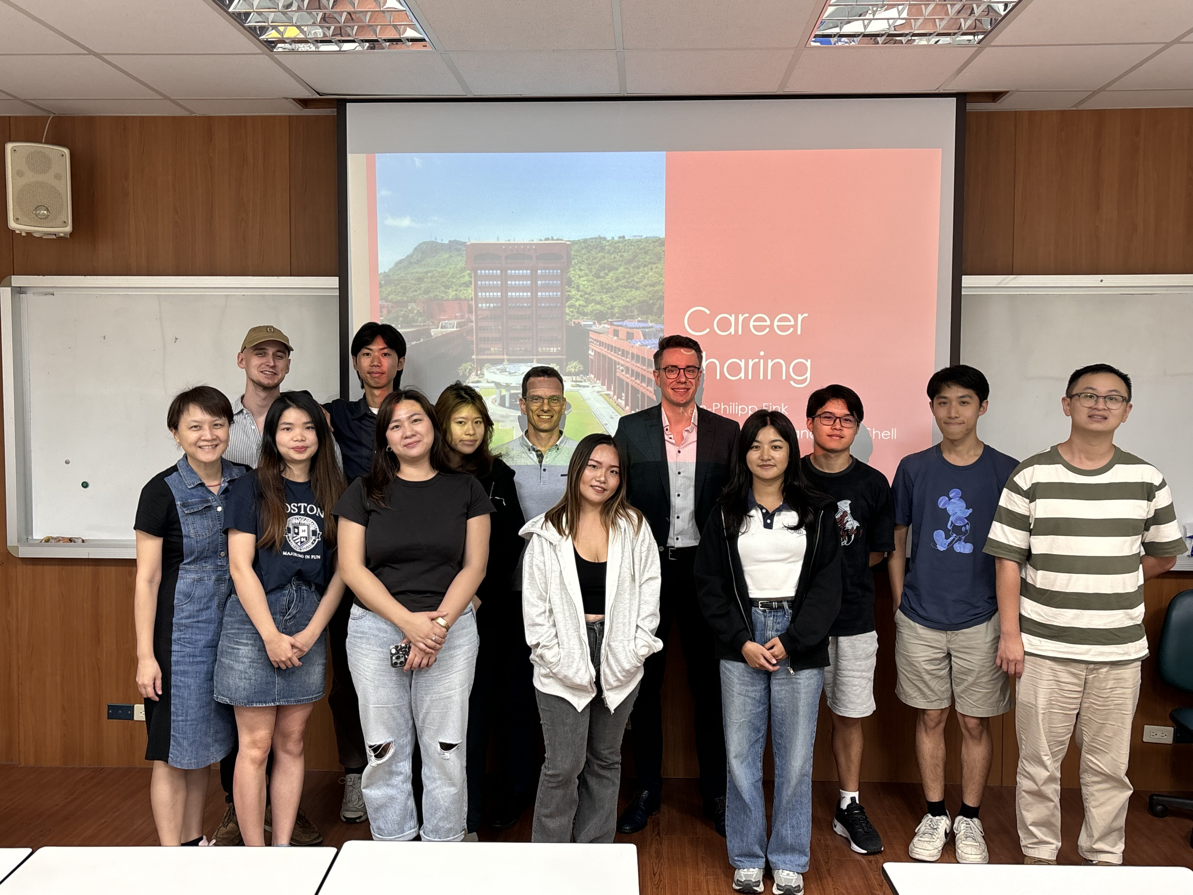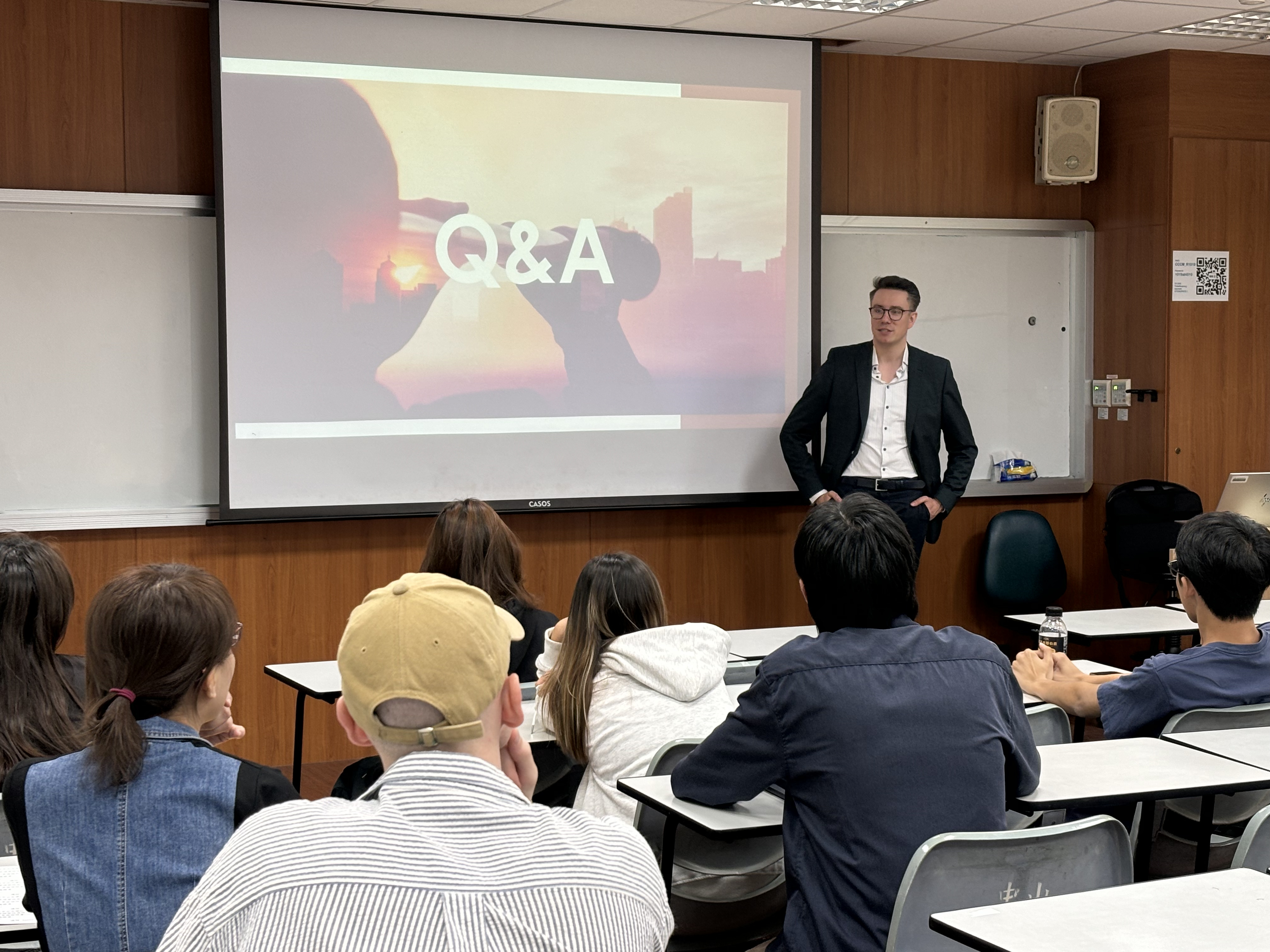 此次結合國際視野與產業實務的寶貴交流由國際交流暨認證辦公室主任劉易(Timo Eccarius)促成,活動最後在熱烈互動中圓滿結束,中山學子收穫滿滿,管理學院也鼓勵學生善用院內各項資源,提升語文能力並加強與校友的鏈結。