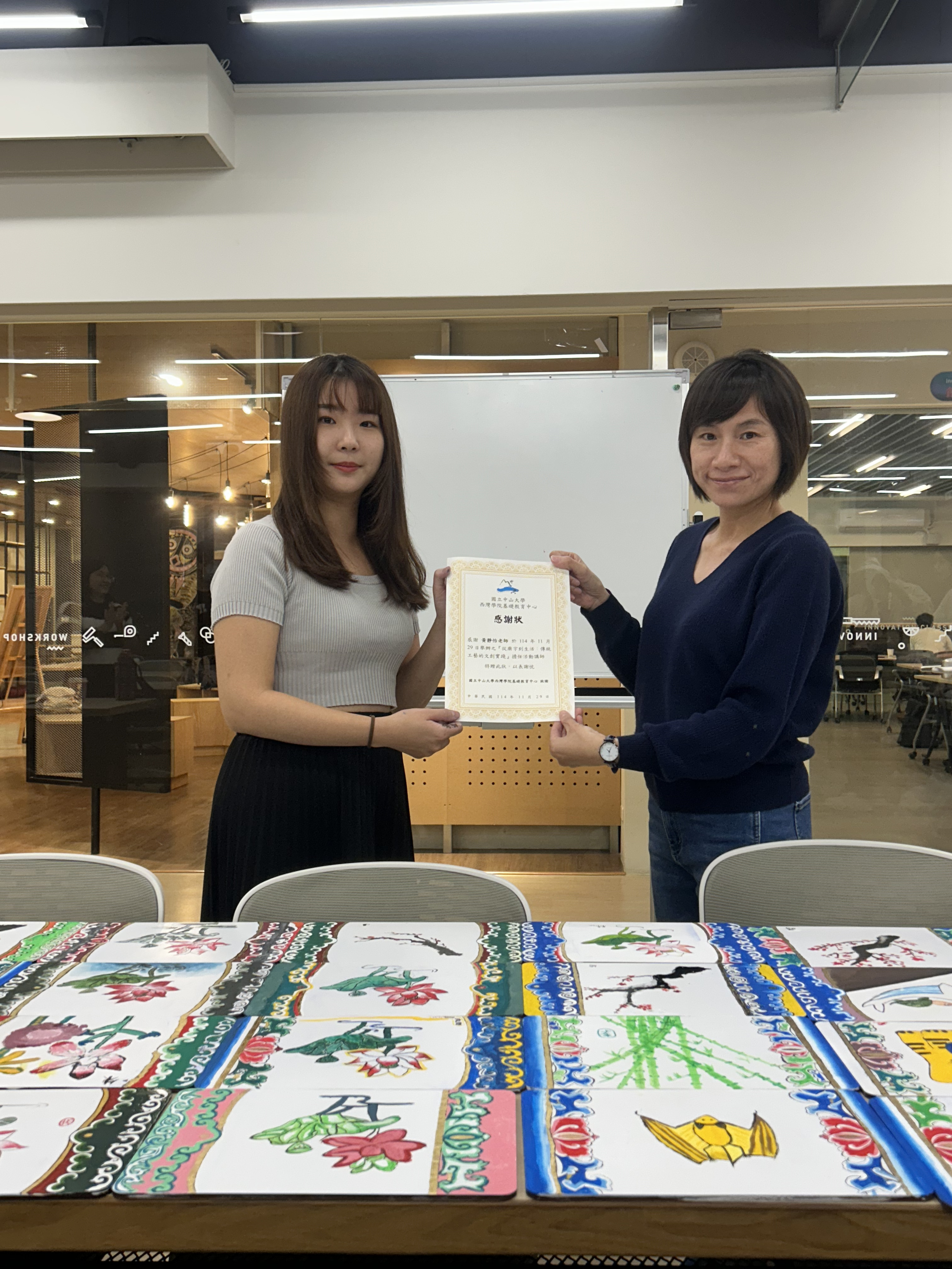 本次課程引導學生在了解文化資產的知識後,進一步透過手中的畫筆,親自感受傳統工藝的魅力,學生們也深刻地了解到「文化不是只存在於廟宇,而是能融入日常生活中」。西灣學院基礎教育中心期望透過本次微學分課程,深化學生對歷史、文化、藝術的素養,培養學生們對文化保存的認識與熱情。