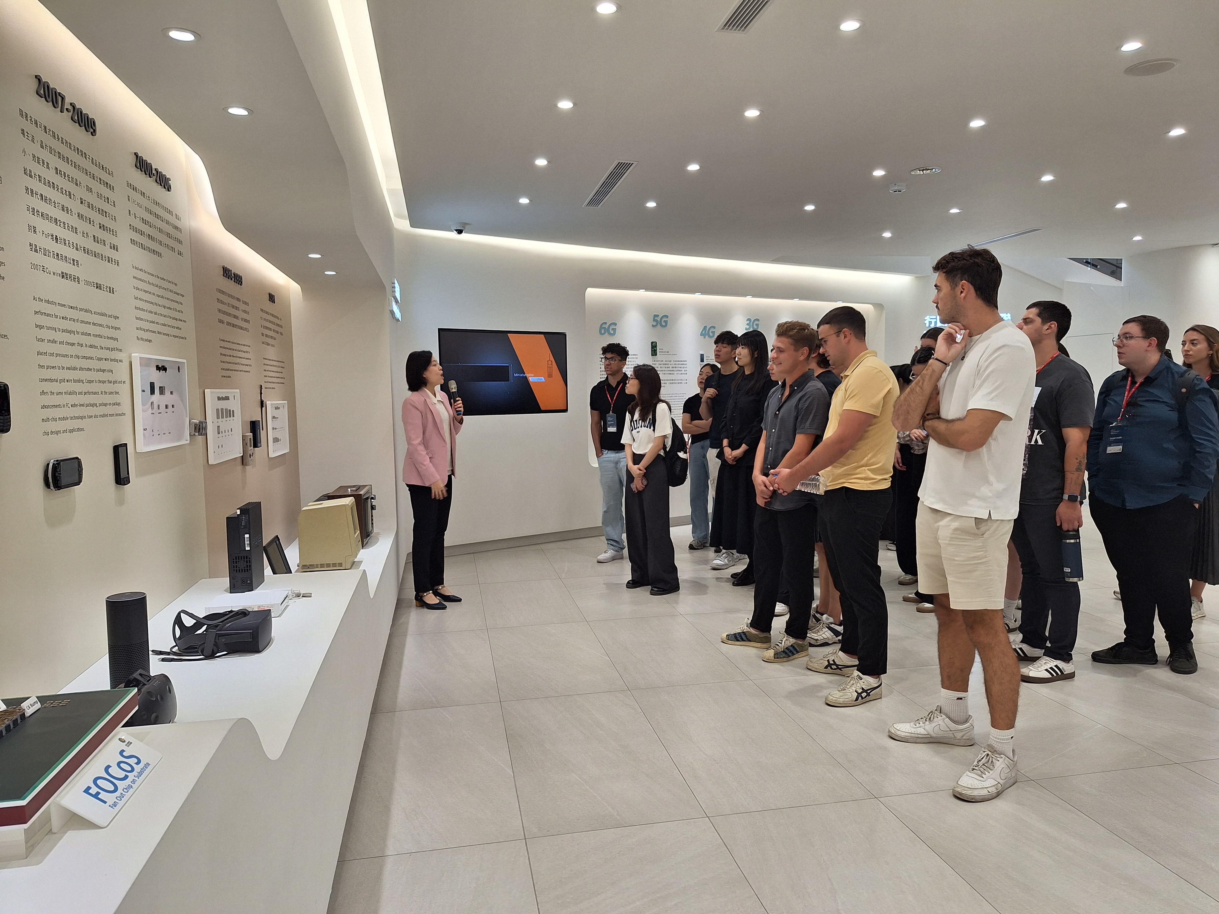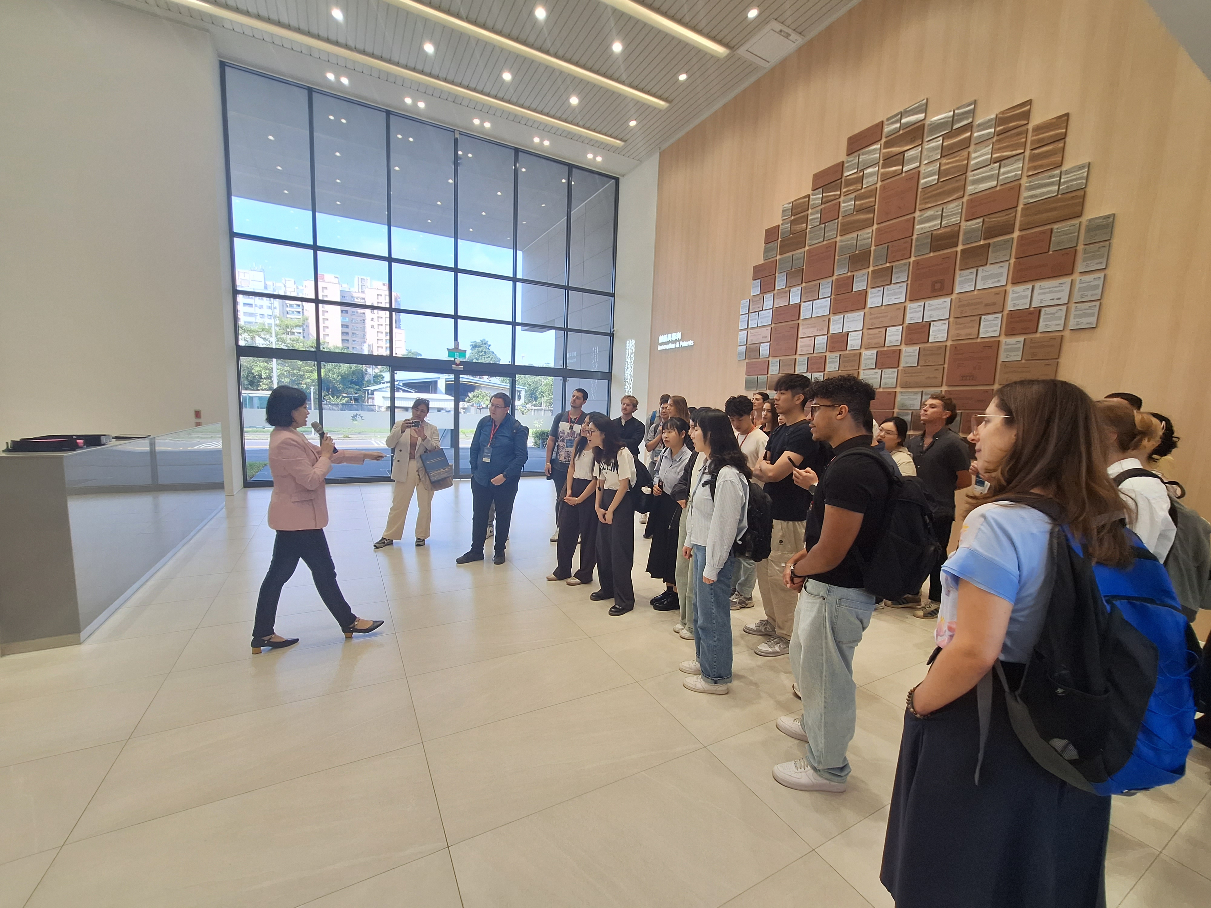 參訪過程中,學生近距離觀摩日月光多項專利成果,實際接觸半導體晶圓與晶片,並參觀展示電子產品發展歷程的展區,深入了解日月光技術如何支撐全球電子產業的演進。此外,學生亦走訪公司歷史展示區,認識日月光自創立以來的發展軌跡及其在全球產業中的重要地位。