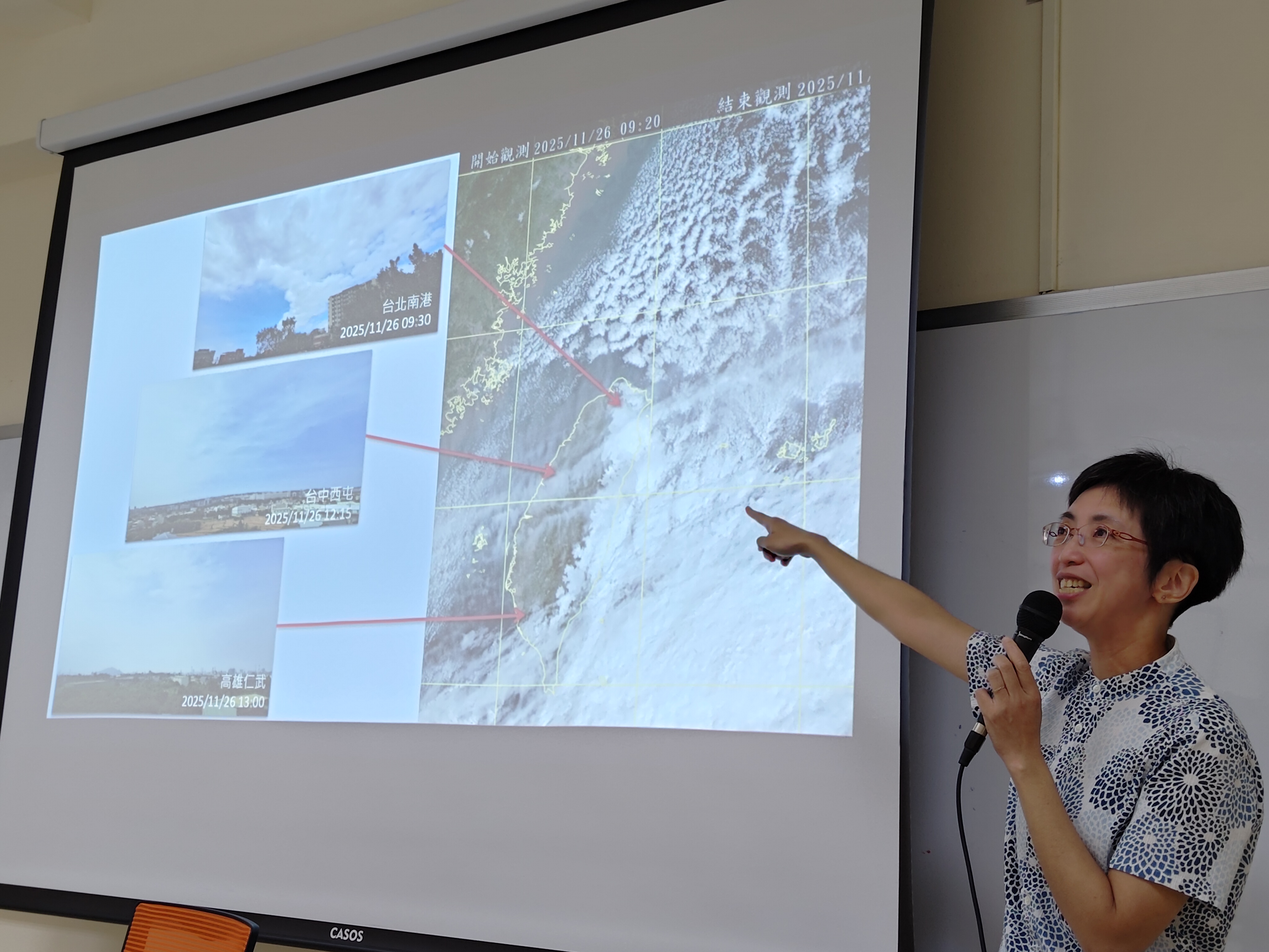 「陳澄波畫作中的季節雲影解密」由臺灣大學大氣科學系副教授陳維婷主講,並由中山大學西灣學院服務學習教育中心教授王以亮擔任與談,上演了一場「大氣科學家遇見藝術家」的絕妙對流。畫布上的雲,究竟是畫家的心情投射,還是真實的氣象紀錄?陳維婷以畫家陳澄波1934年的代表作《展望諸羅城》為例,拋出了一個困擾藝術史學界多年的謎團:畫作中遠處三根煙囪的煙正向南飄,顯示當時吹著北風,但標題顯示這是炎熱的八月,嘉義理應盛行西南風,這是否為畫家為了構圖平衡而進行的藝術虛構?