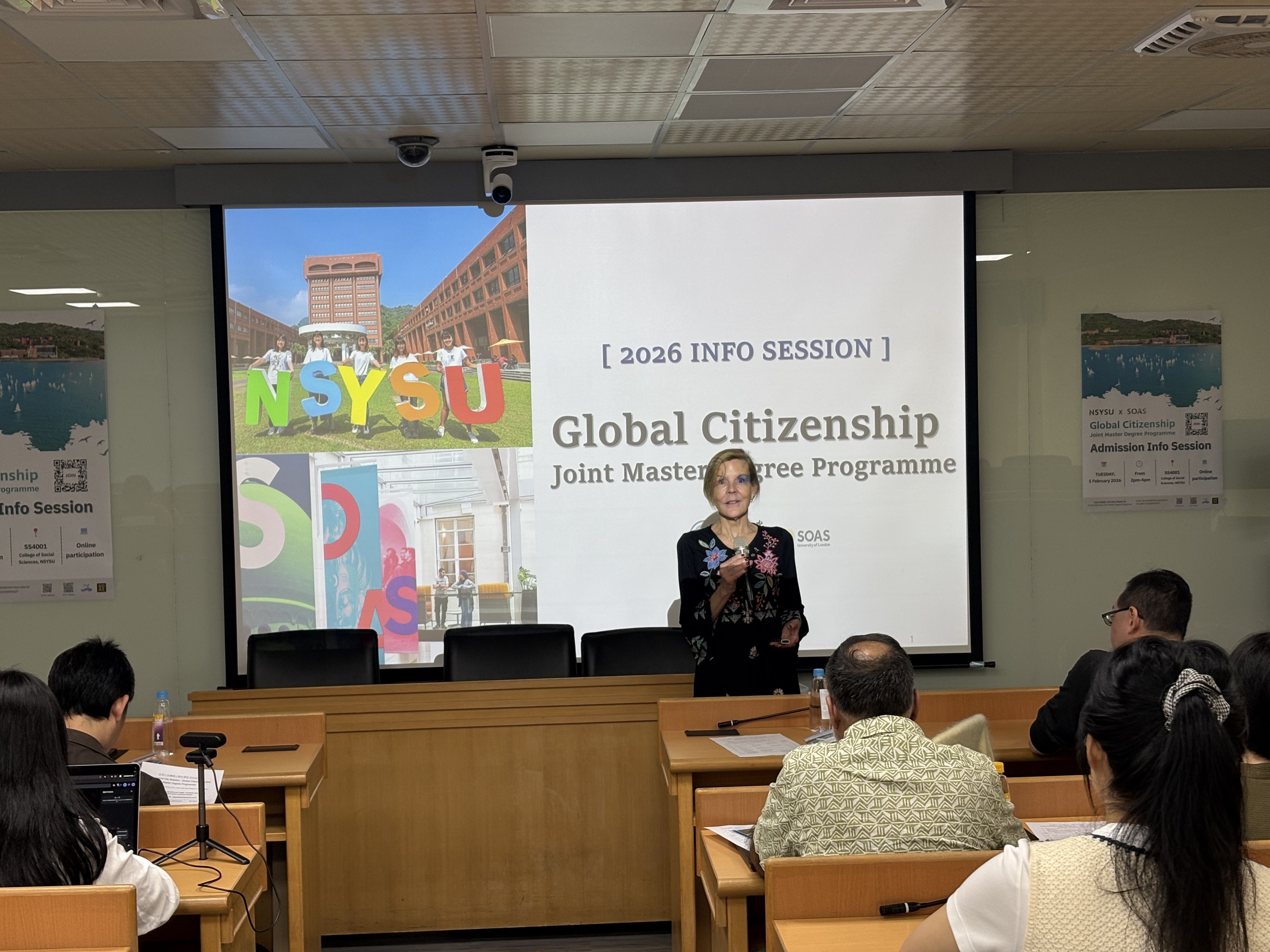 國立中山大學與倫敦大學亞非學院(SOAS University of London)114年4月簽署校級合作備忘錄、12月正式簽署「全球公民權碩士學位學程—學位授予協議書」,期間雙方多次密集討論協作,日前舉辦「NSYSU-SOAS全球公民權碩士學位學程」招生說明會,正式啟動深度學術合作。