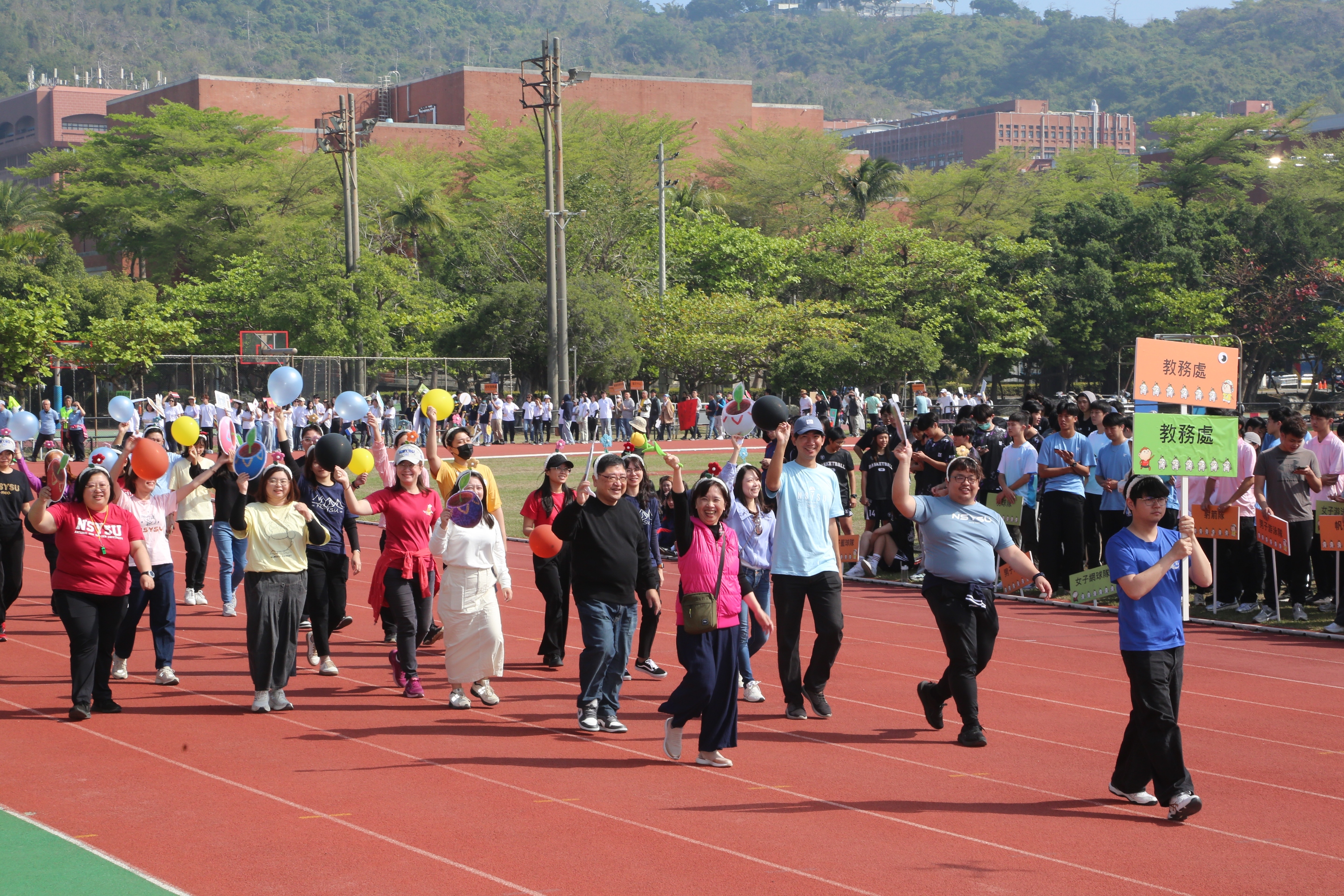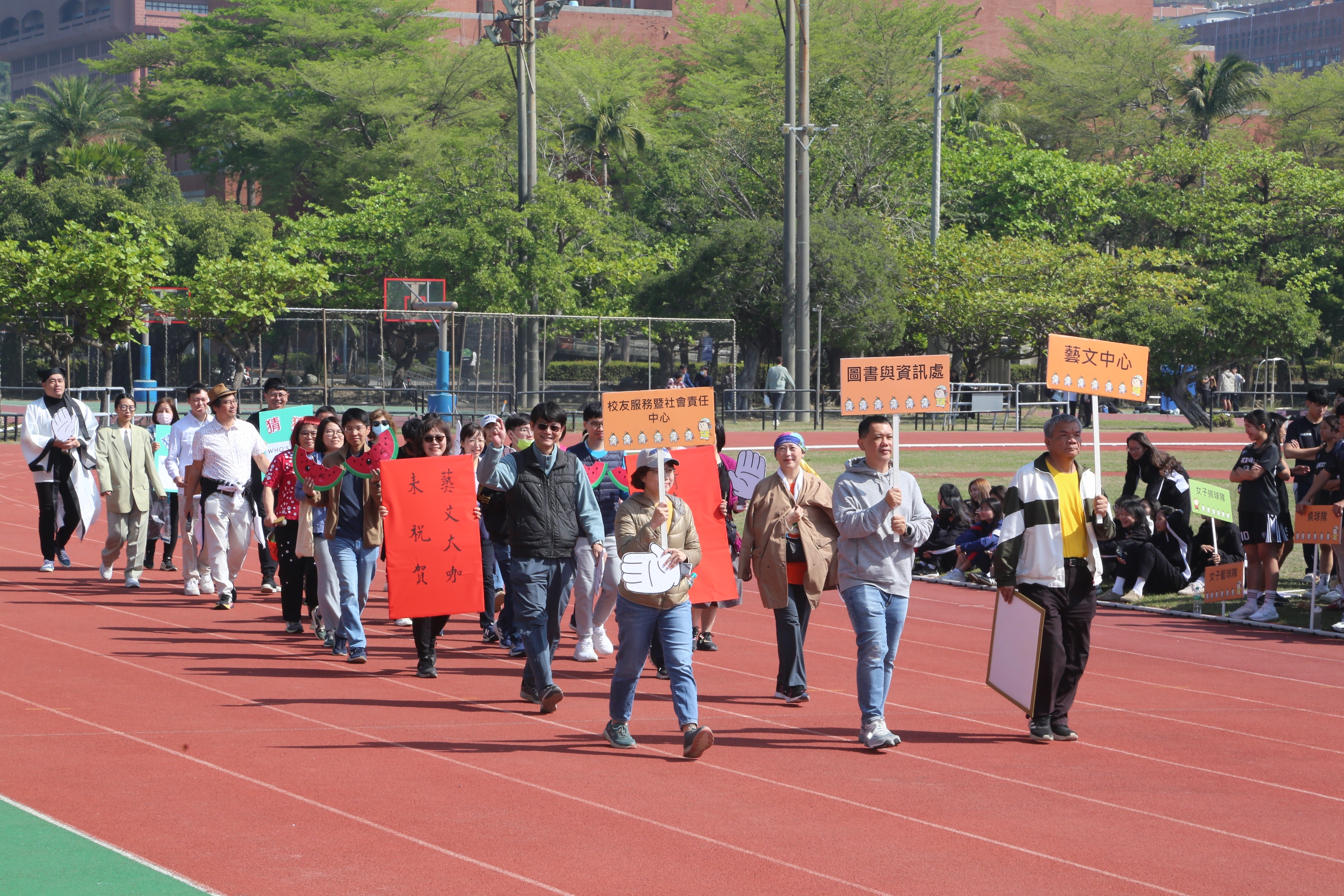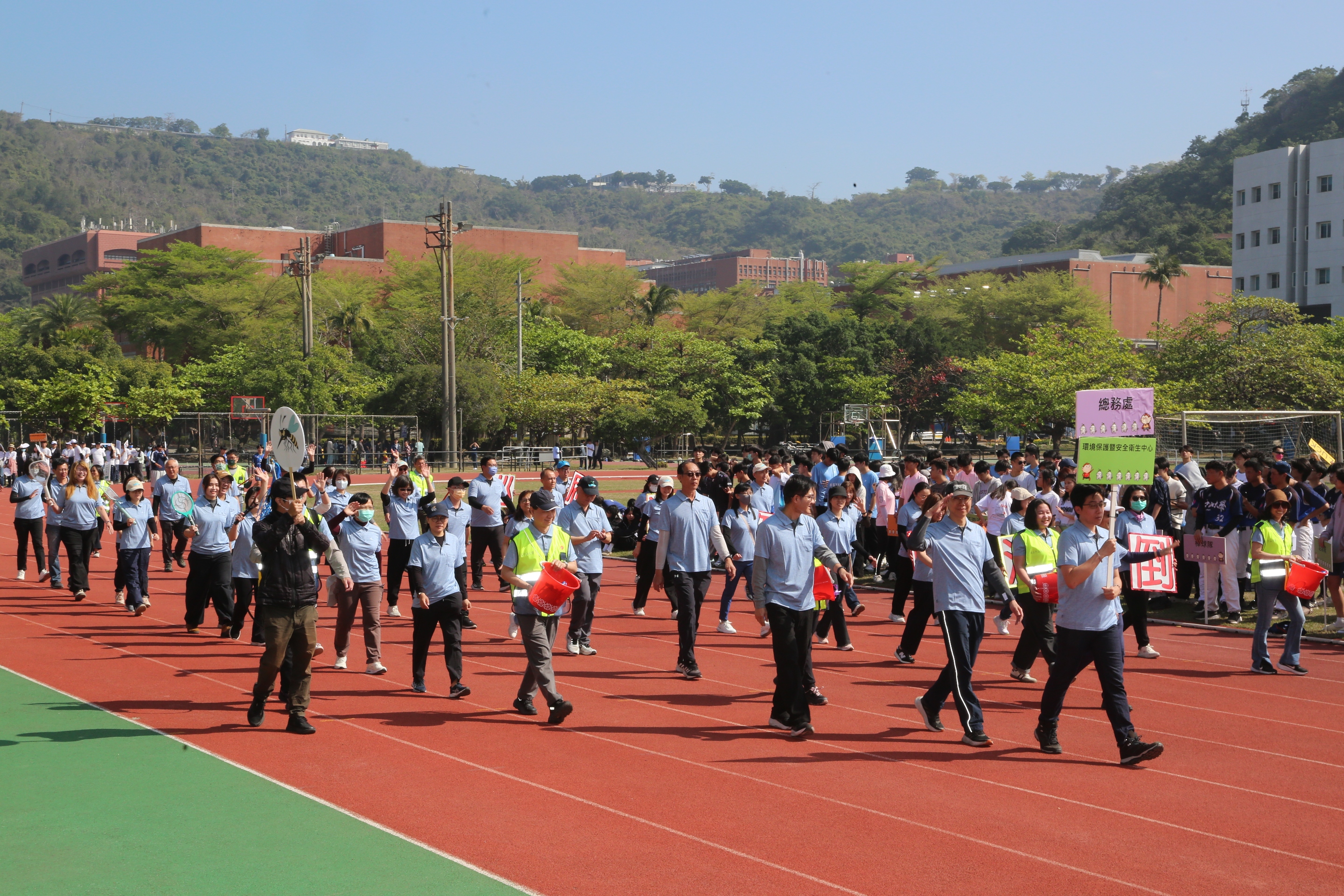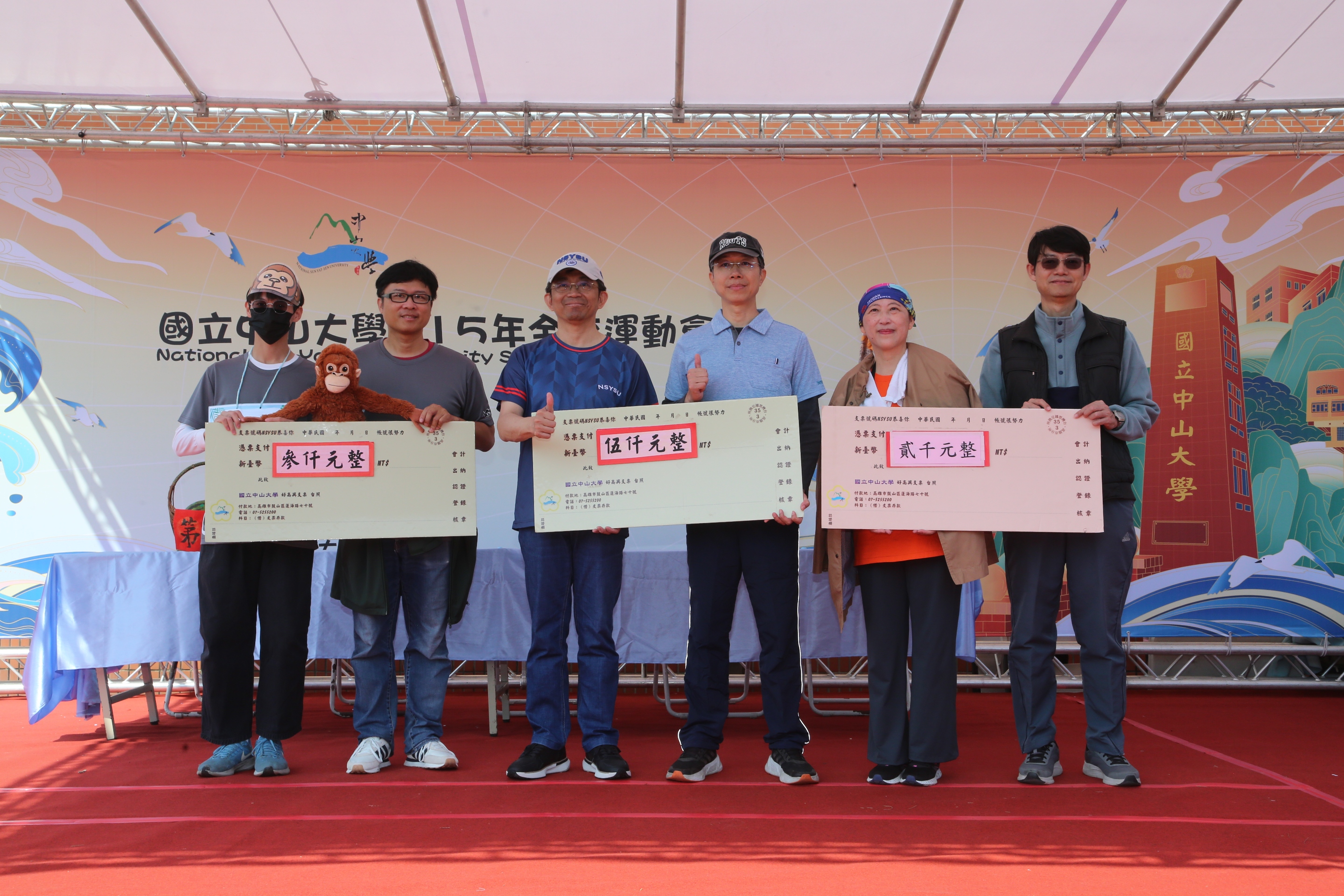 經一番激烈評選,教職員行政單位組前三名依序為總務處暨環安中心、學務處,以及圖資處、藝文中心及校責中心聯隊;教職員學術單位組由醫學院拿下冠軍、理學院為亞軍、工學院為季軍;學生組由劇藝系、國際跨領域學士學位學程原住民專班及田徑隊獲獎;特別獎則頒給中山附幼,校長李志鵬特別加碼致贈每名小朋友獨有的中山小熊玩偶。