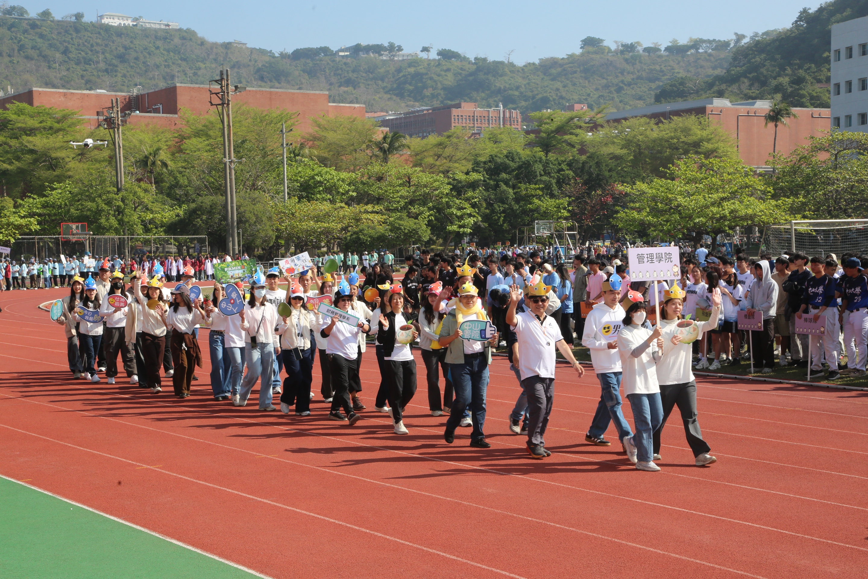 國立中山大學2026年全校運動會創意進場秀由運動校隊、學術單位及行政單位共同參與,團隊展示各種自製標語與服裝道具,配合精心設計的隊形變化與口號,還有敲鑼擊鼓、原住民舞蹈、扯鈴表演、現場演出日本小猴「Panchi」緊抱猩猩玩偶的故事、消滅登革熱病媒蚊的情境等,充分表現中山大學的創意特色與活力。今年分別由總務處、醫學院、劇藝系奪得各組別冠軍。