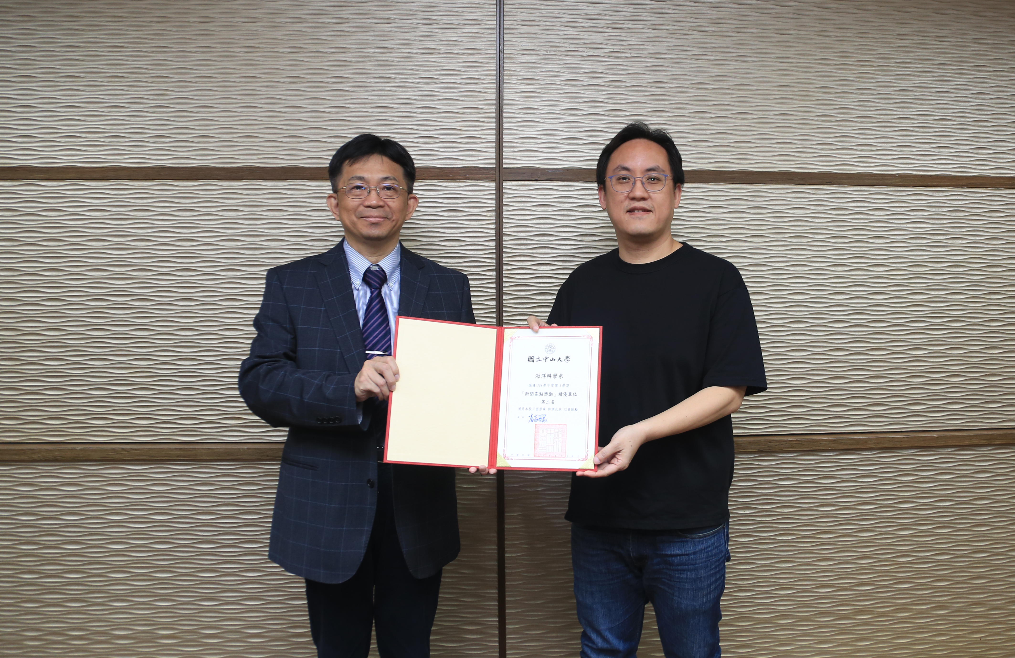 國立中山大學114學年度第1學期「新聞亮點獎勵」績優單位公布,本次學術績優單位前10名依序為氣膠科學研究中心、海洋科學系、西灣學院、中國文學系、劇場藝術學系、醫學院、社會學系、光電工程學系、資訊工程學系、海洋生物科技暨資源學系。