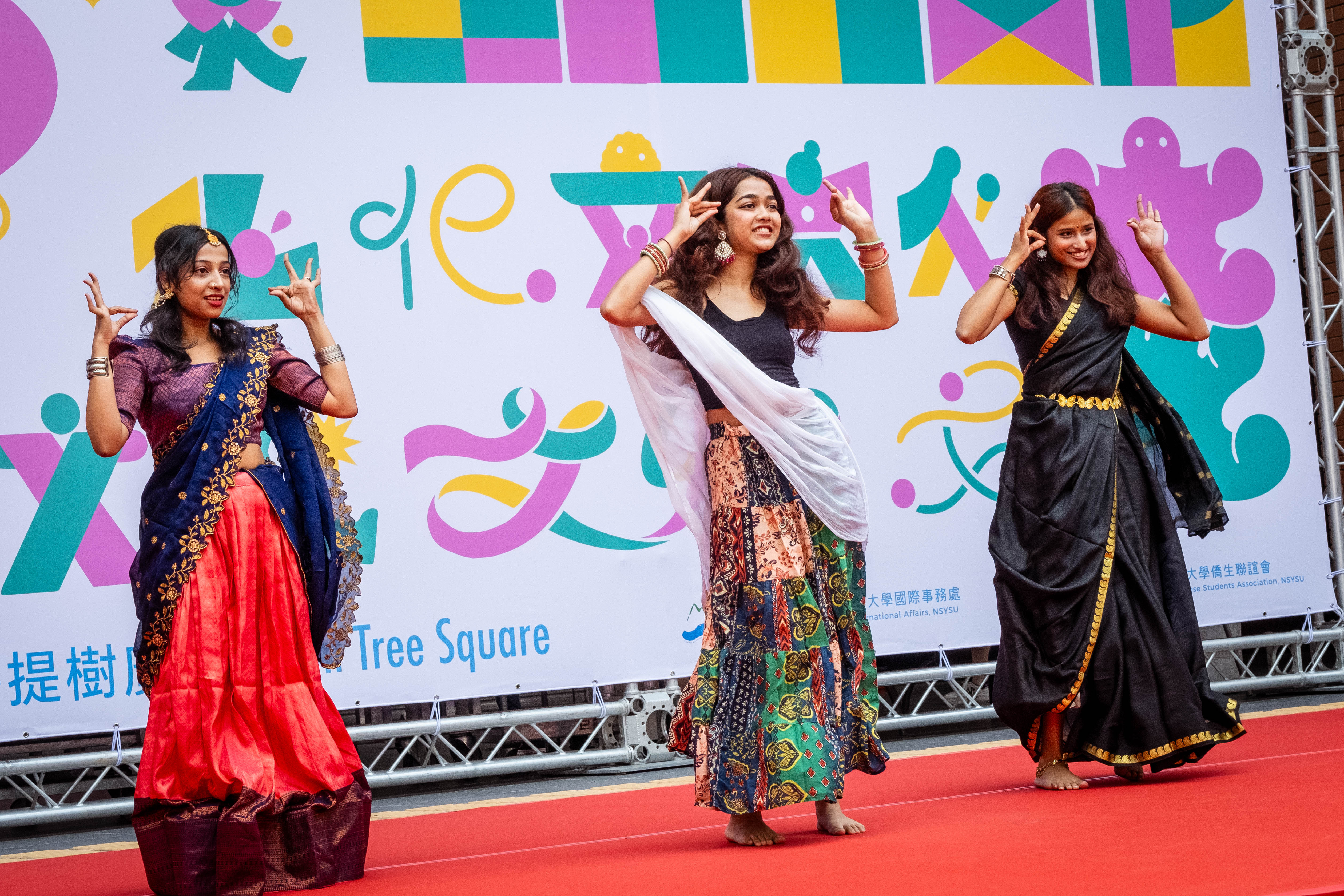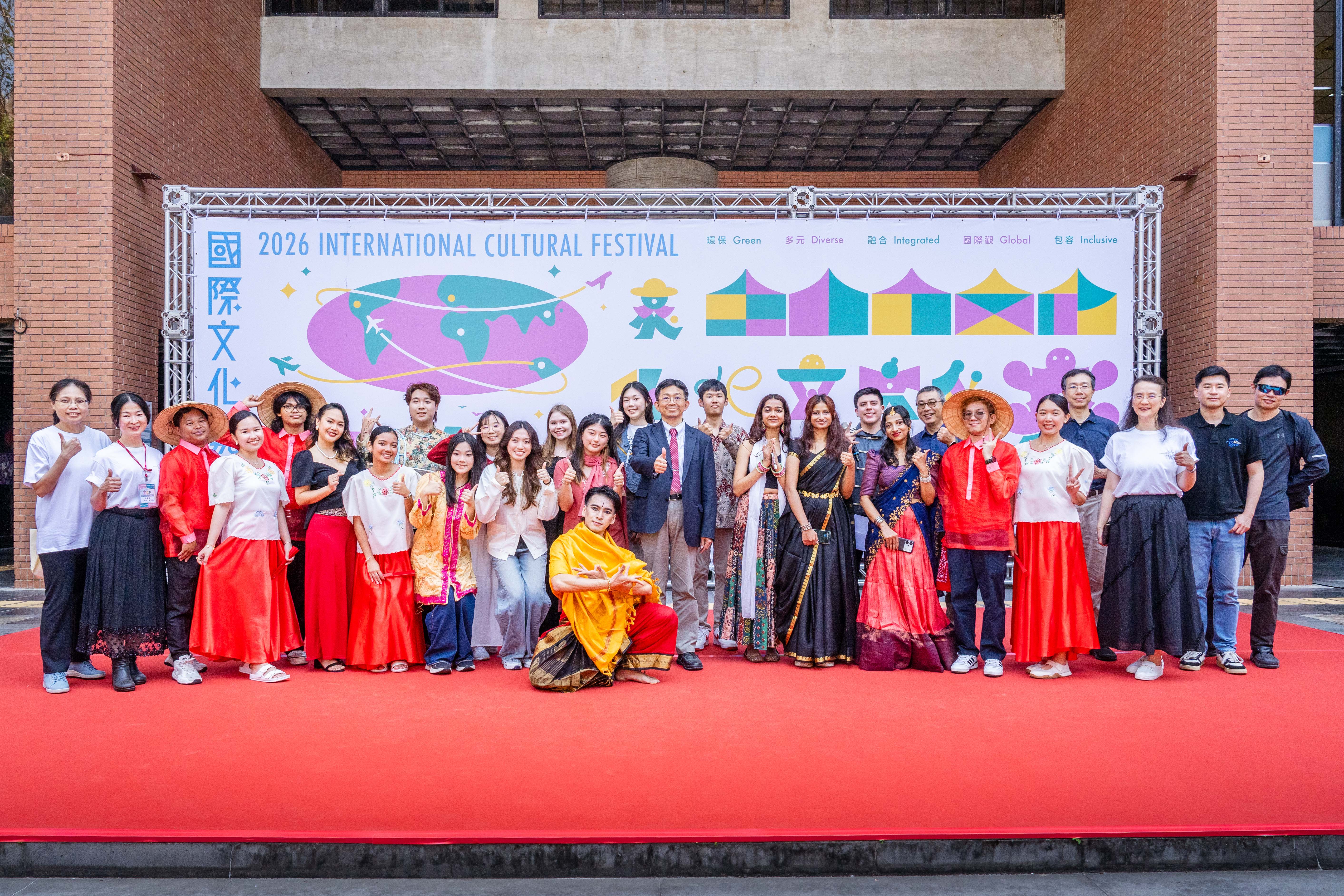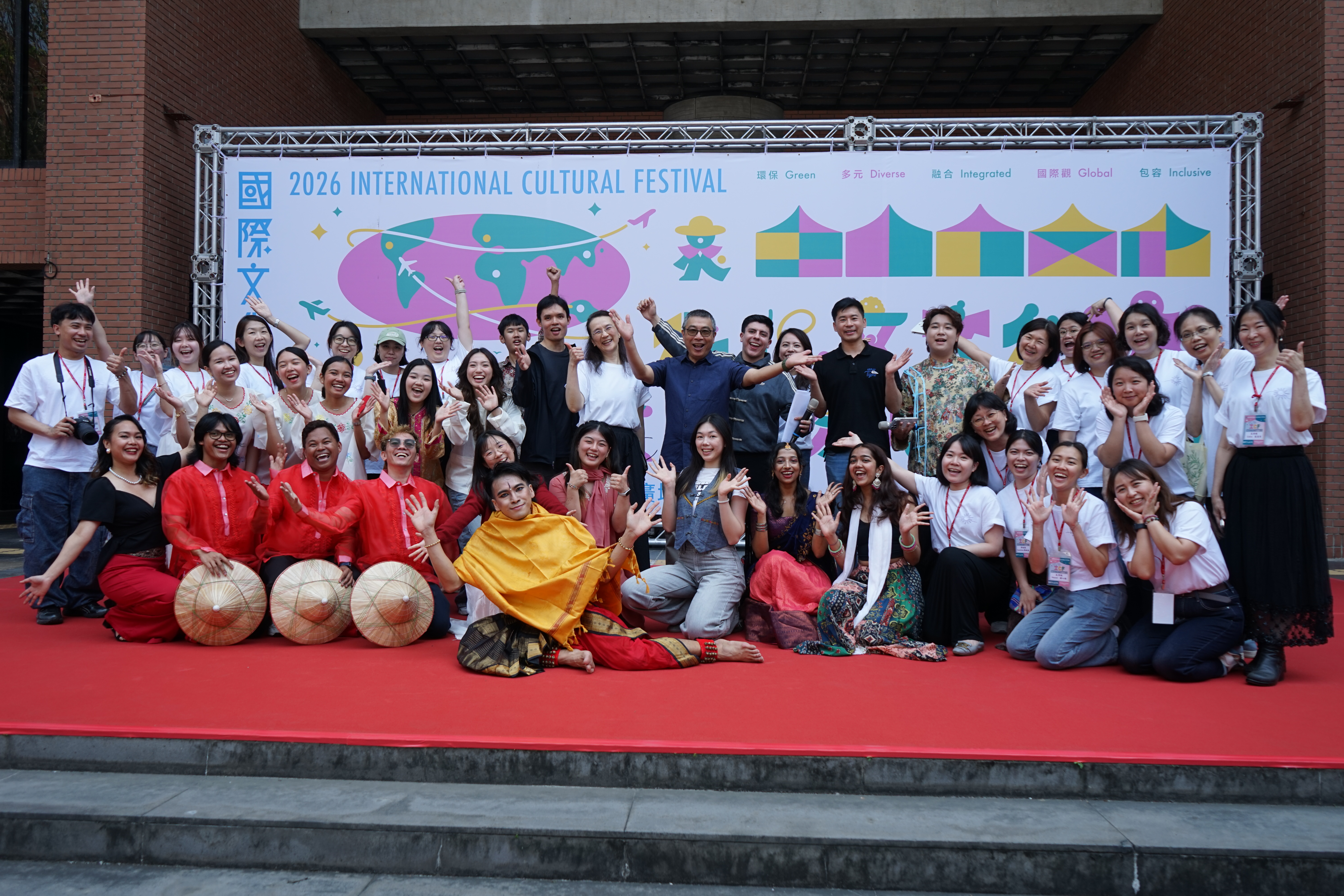 活動除規劃多國文化體驗與互動遊戲,也匯集歌舞與音樂展演,由34名來自14國學生輪番演出,並由國際生主持串聯各國風情;師生同台演唱,展現跨文化交流活力。舞蹈涵蓋印度婆羅多舞、寶萊塢舞、菲律賓民俗舞及現代舞等多元風格,並邀請高雄醫學大學及高雄師範大學跨校演出,呈現文化交融成果。最終由馬來西亞團隊獲最佳美食獎、泰國團隊奪最佳環保攤位設計獎,印尼團隊則拿下最佳體驗獎,為活動畫下精彩句點。