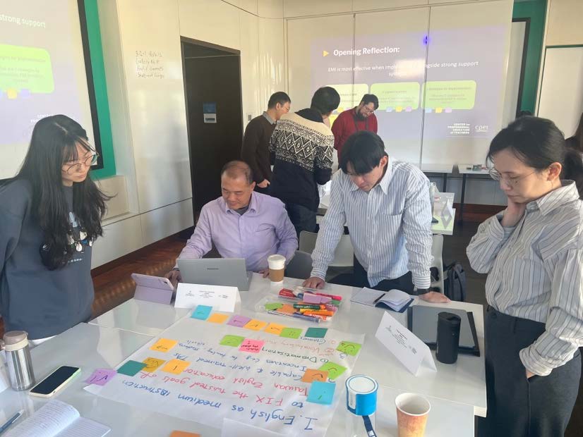 隨著臺灣全英授課環境已有一定基礎,EMI教學的核心已從「語言轉換」走向「學習設計」。此次前往UCSD參訓的中山大學生物醫學科技學系副教授李孟娟、劇場藝術學系副教授何怡璉以及資訊管理學系助理教授羅珮綺皆指出,成功的EMI課程關鍵在於打造具支持性與安全感的學習環境;透過低風險評量與清晰的課堂結構,協助學生逐步建立自信心與參與習慣。同時,團隊導向學習(TBL)與同儕合作機制亦能有效提升學生的投入度與責任感。而前往ASU參訓的中山臨床醫學科學博士學位學程助理教授楊仁豪也強調,EMI課堂應強化學生參與和即時互動,透過多元活動設計與科技工具輔助,引導學生在課堂中持續思考與回饋,進而提升學習成效。