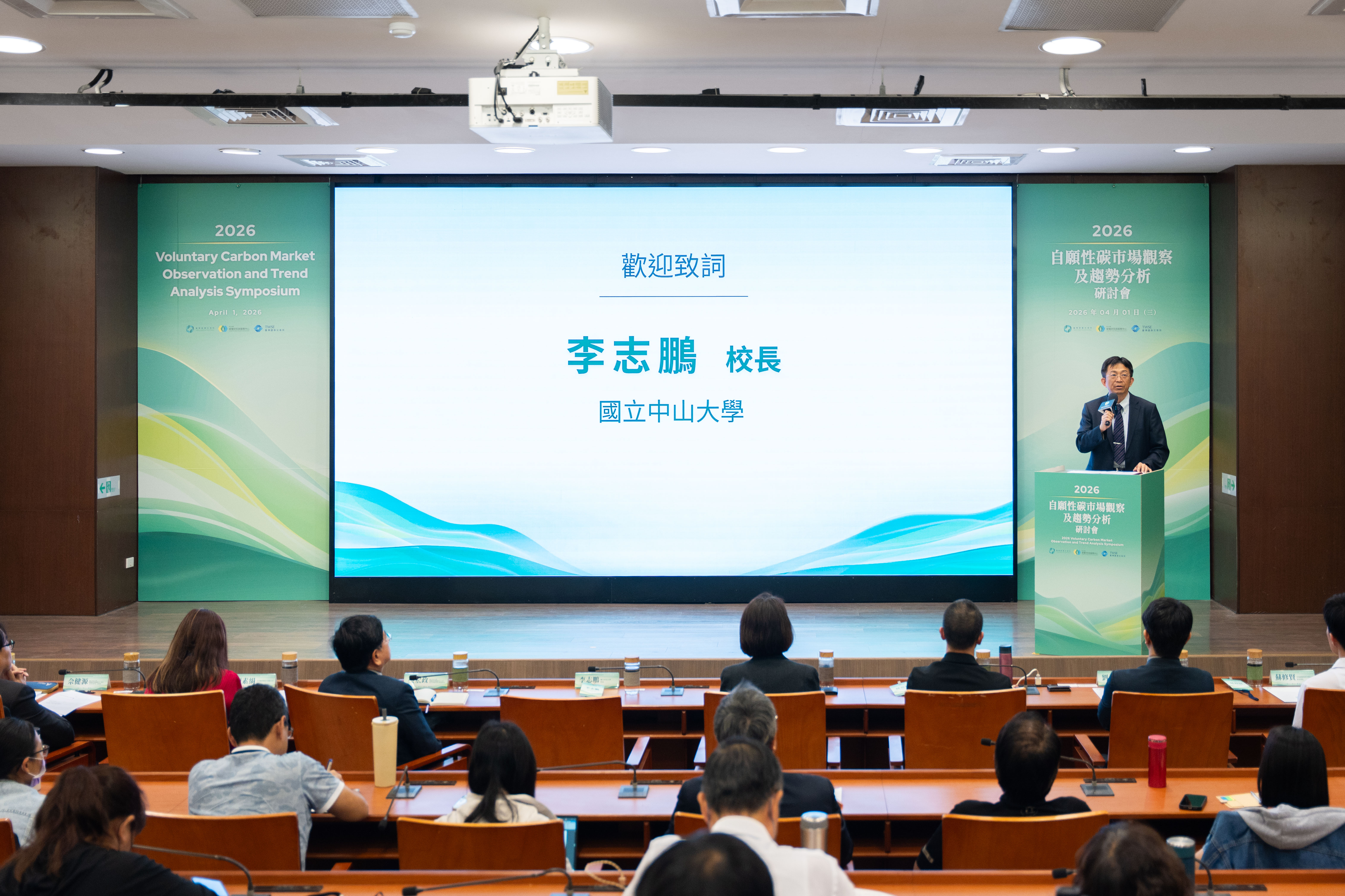 臺灣碳權交易所總經理陳脩文致詞表示,研討會在高雄舉辦別具意義,高雄市政府積極推動淨零轉型與碳權計畫,未來可望有更多在地減量專案上架交易平台。中山大學校長李志鵬則指出,校內碳權中心在碳交所與證交所的支持下,每年發布市場觀察報告,針對全球碳交易資料庫進行分析,並免費公開提供公民社會參考,善盡大學社會責任。